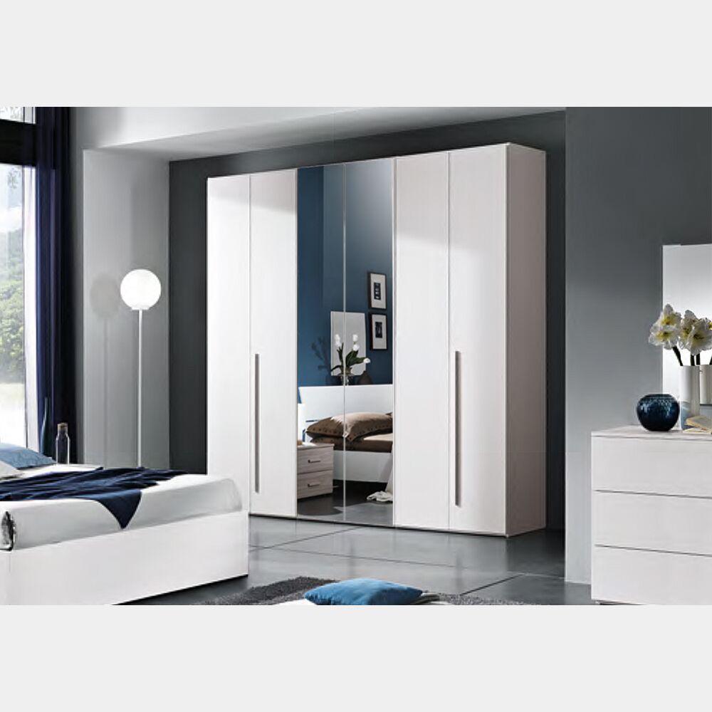 Armadio a 6 ante ante battenti bianco frassinato con specchi
