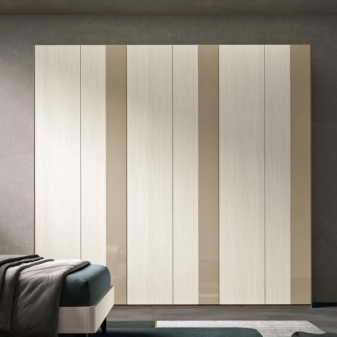 Armadio a 6 ante (spessore 38 mm e con cerniere soft) battenti che creano una superficie visiva continua e armoniosa e con alcune delle quali sono dotate di vetri in cui specchiarsi: risulta utile non soltanto per contenere ogni genere di capo d'abbigliamento, ma anche per provare i vostri outfit.