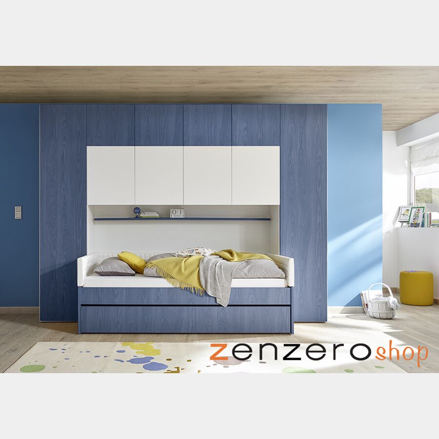 Armadio a ponte a 6 ante battente in colore bianco opaco e blu.