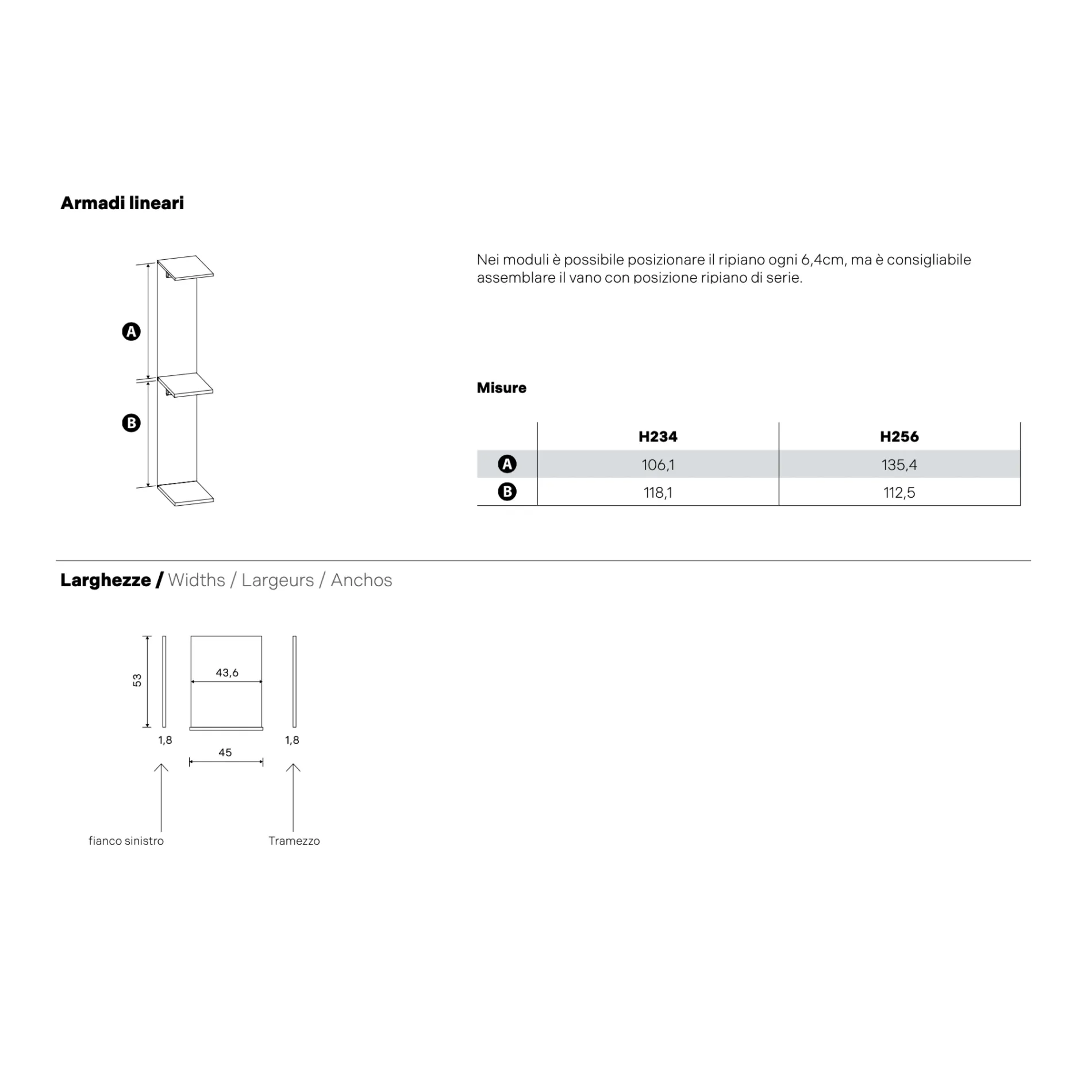 • Modulo laterale: un ripiano, 2 tubi appendiabiti