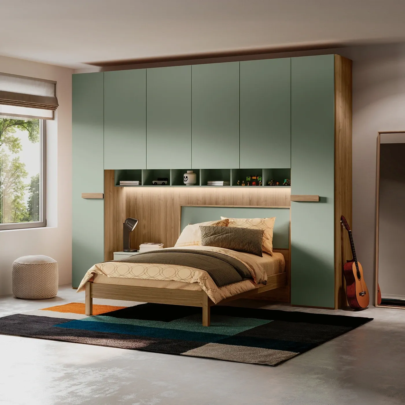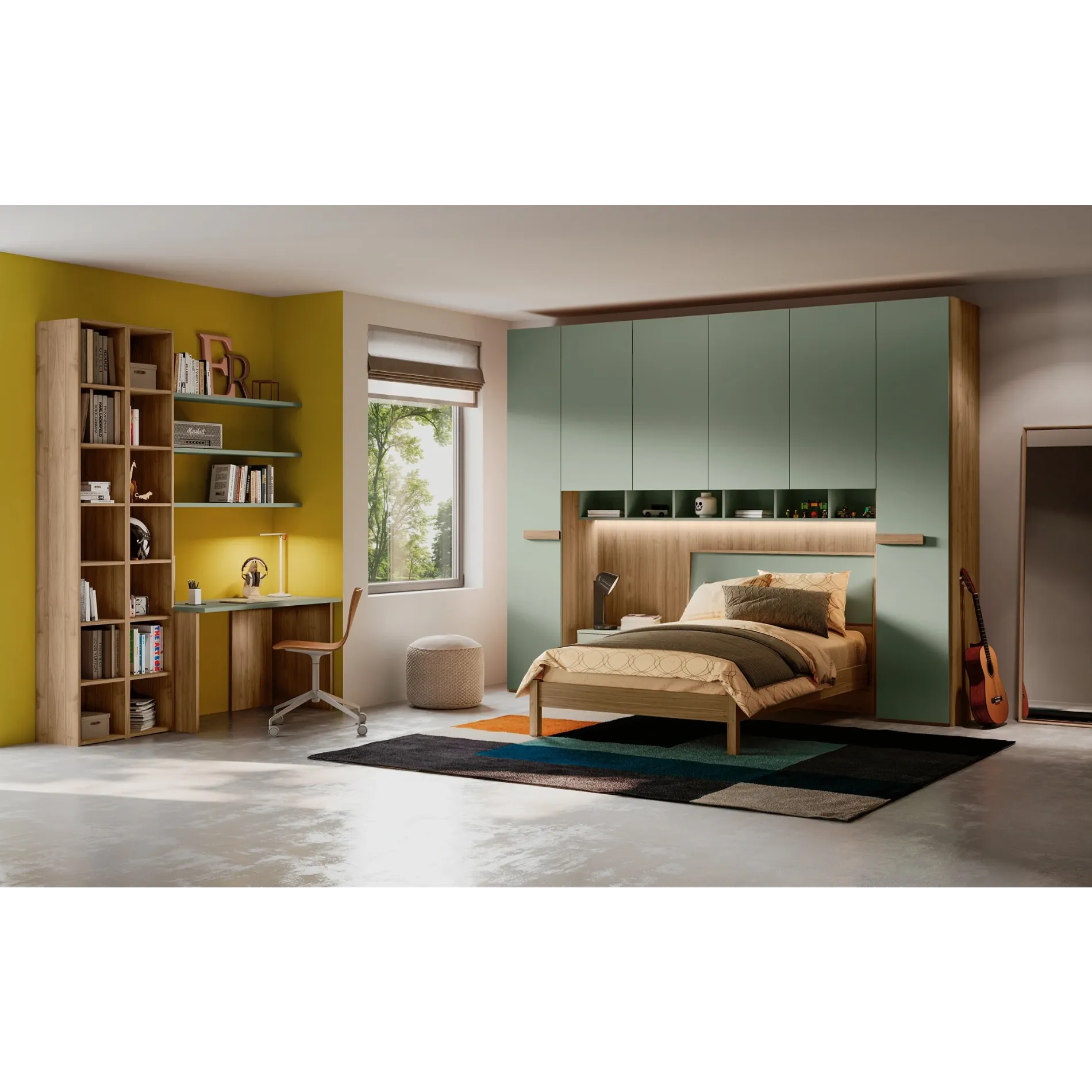 Le finiture Agave e Noce biondo, tinte calde e moderne, donano alla cameretta un tocco allegro e vivace.