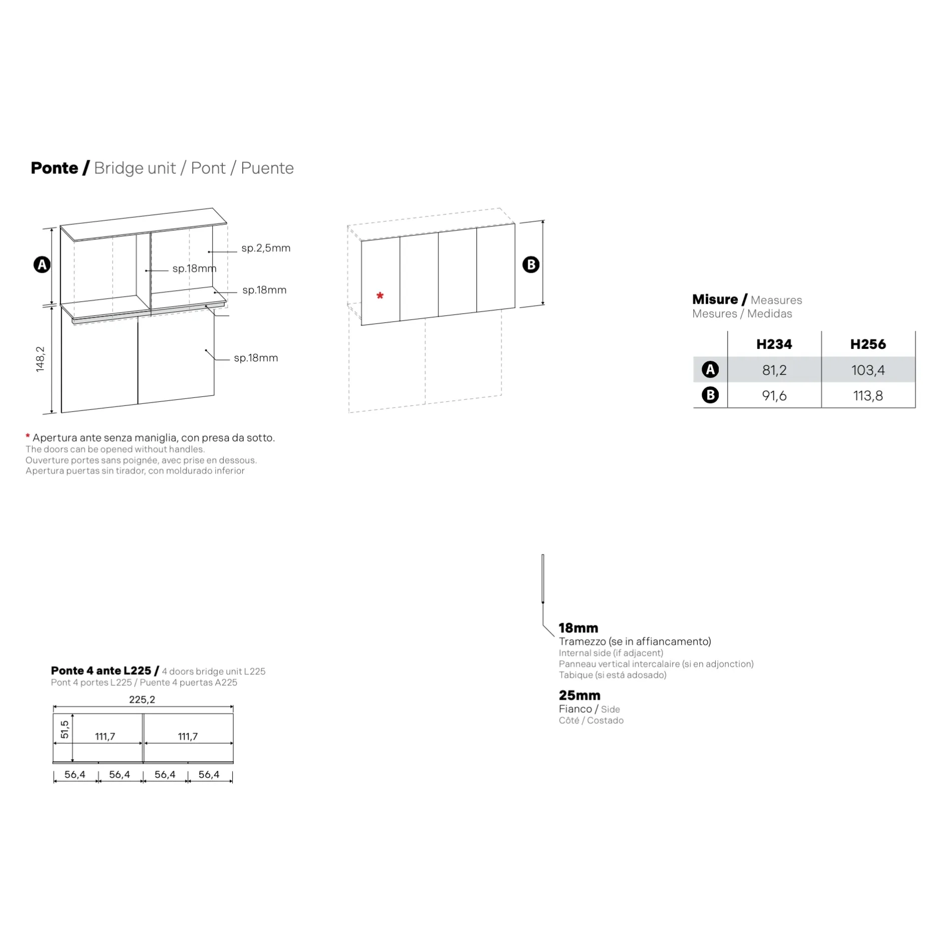Armadio a ponte 6 ante, Agave e Noce biondo, L.320