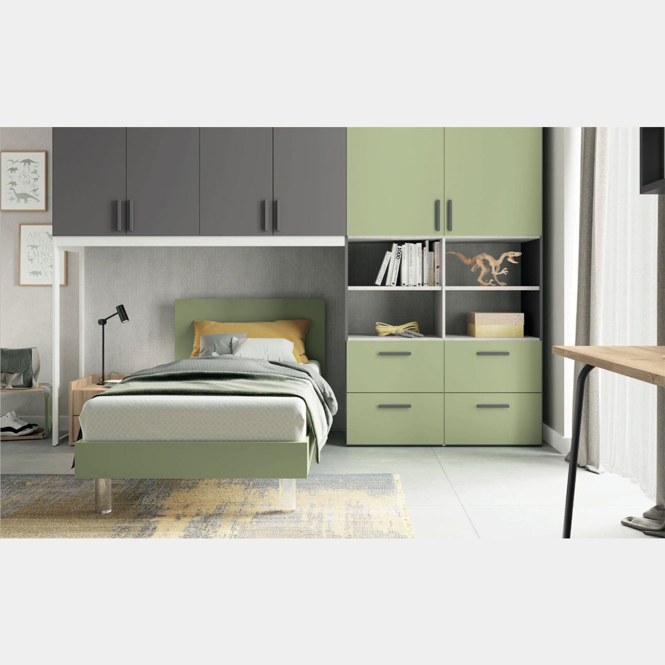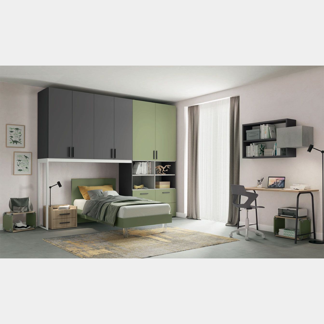 Armadio a ponte con 6 ante battenti in finitura Grigio titanio e Oliva