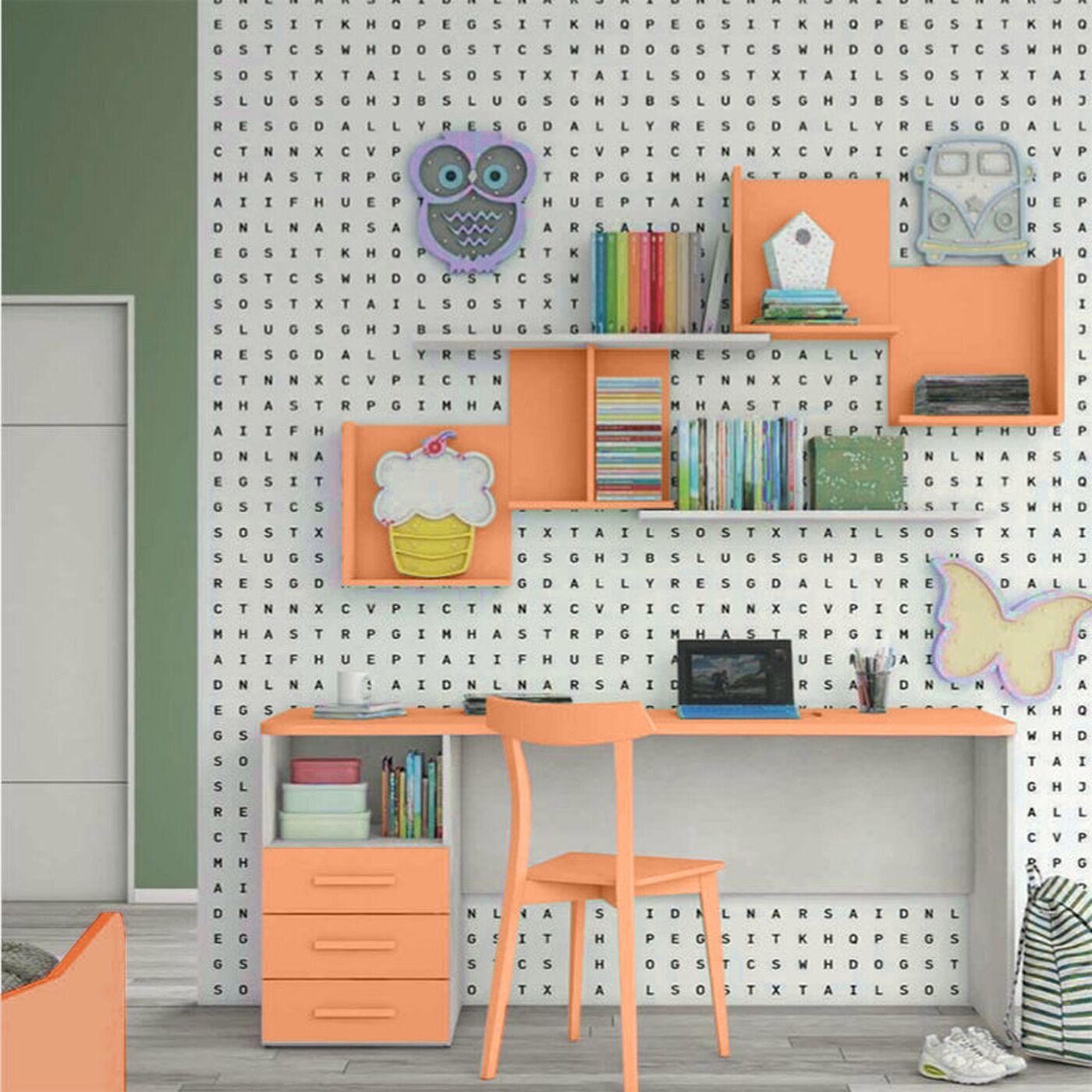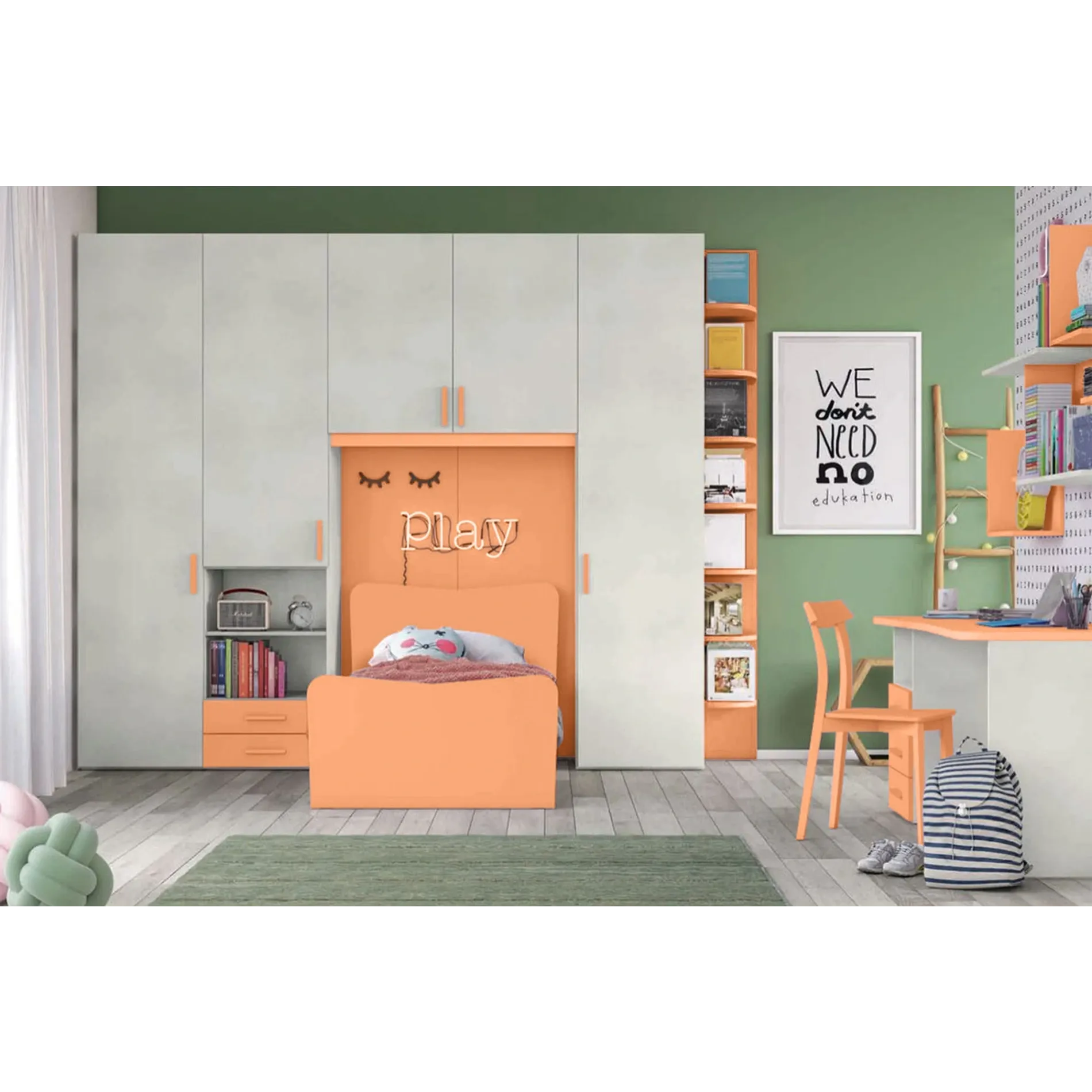 Armadio a ponte per cameretta in finitura Cemento Artico e Papaya