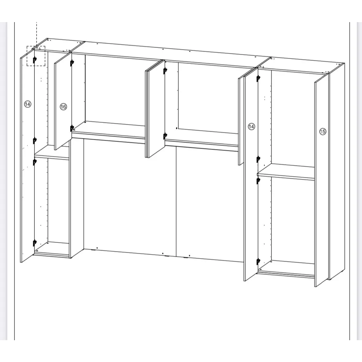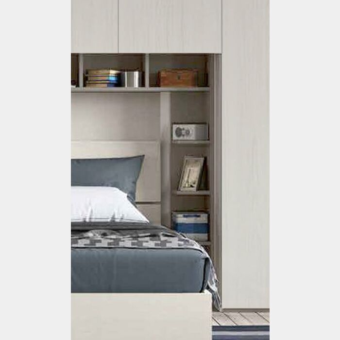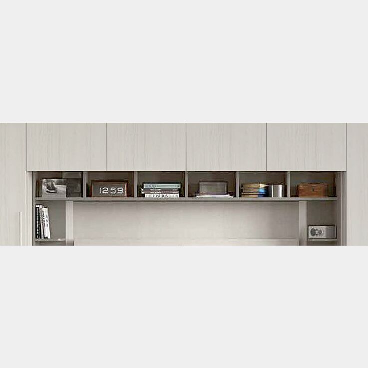 L'armadio a ponte non è comprensivo del letto, ne della mensola orizzontale color visone e delle due mensole laterali color Argento. Dal menù degli optional è comunque possibile selezionarli.