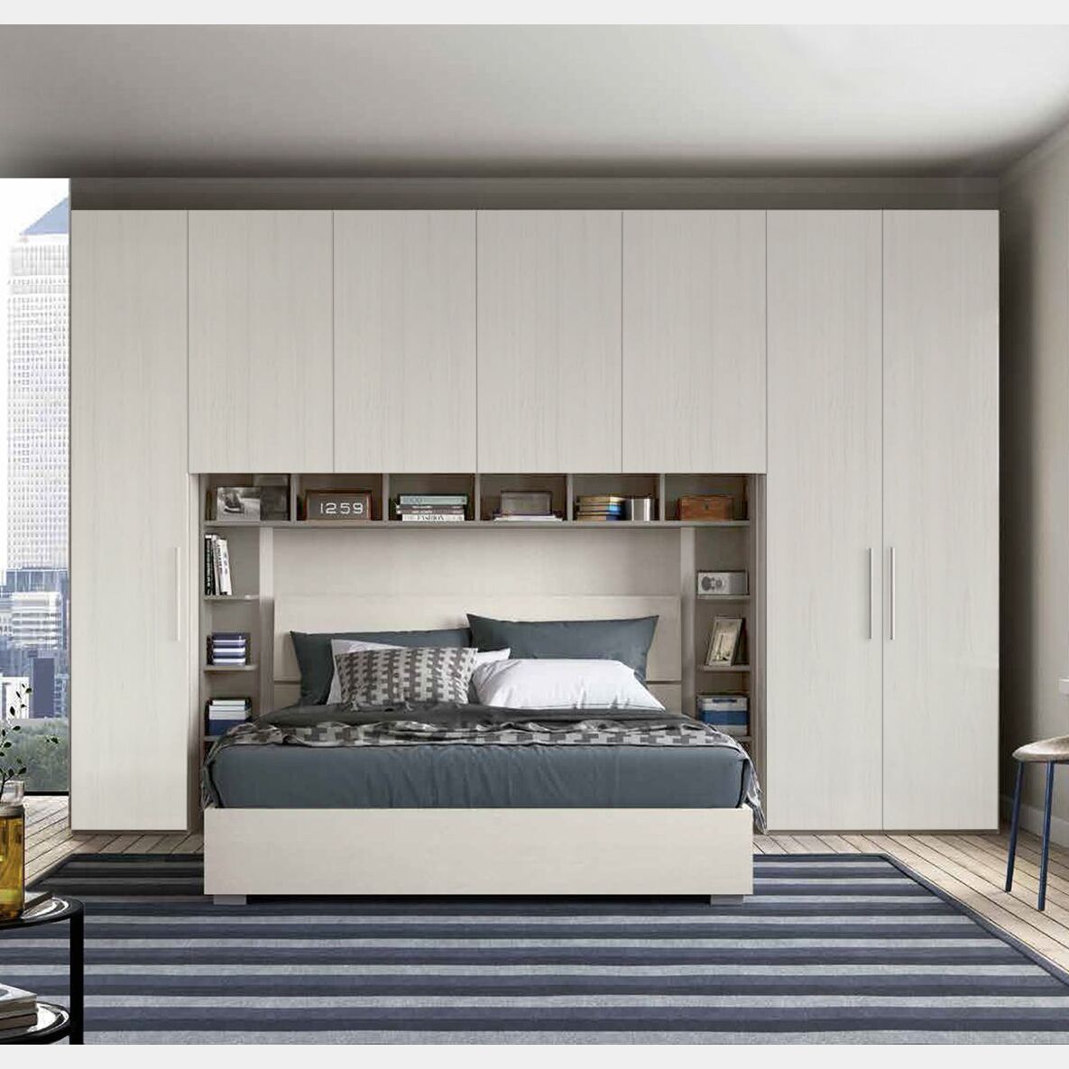 Armadio a ponte 7 ante battenti, in finitura bianco altea: L.365 H.245 P.55 cm, misure sottoponte 225.2