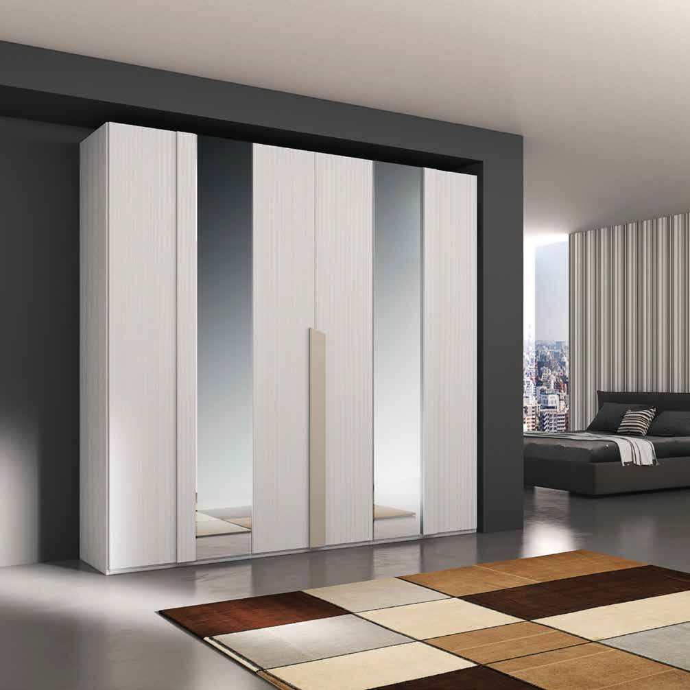 Armadio Albanella con 6 ante battenti in finitura Larice bianco e Tortora con specchi