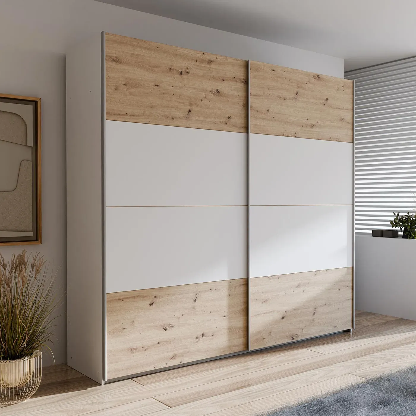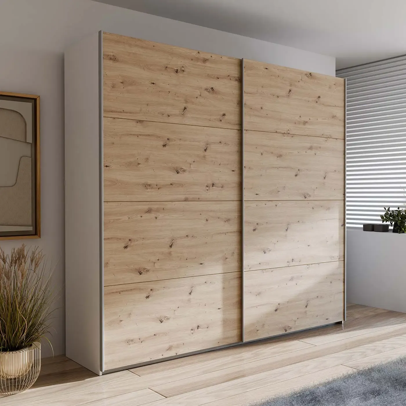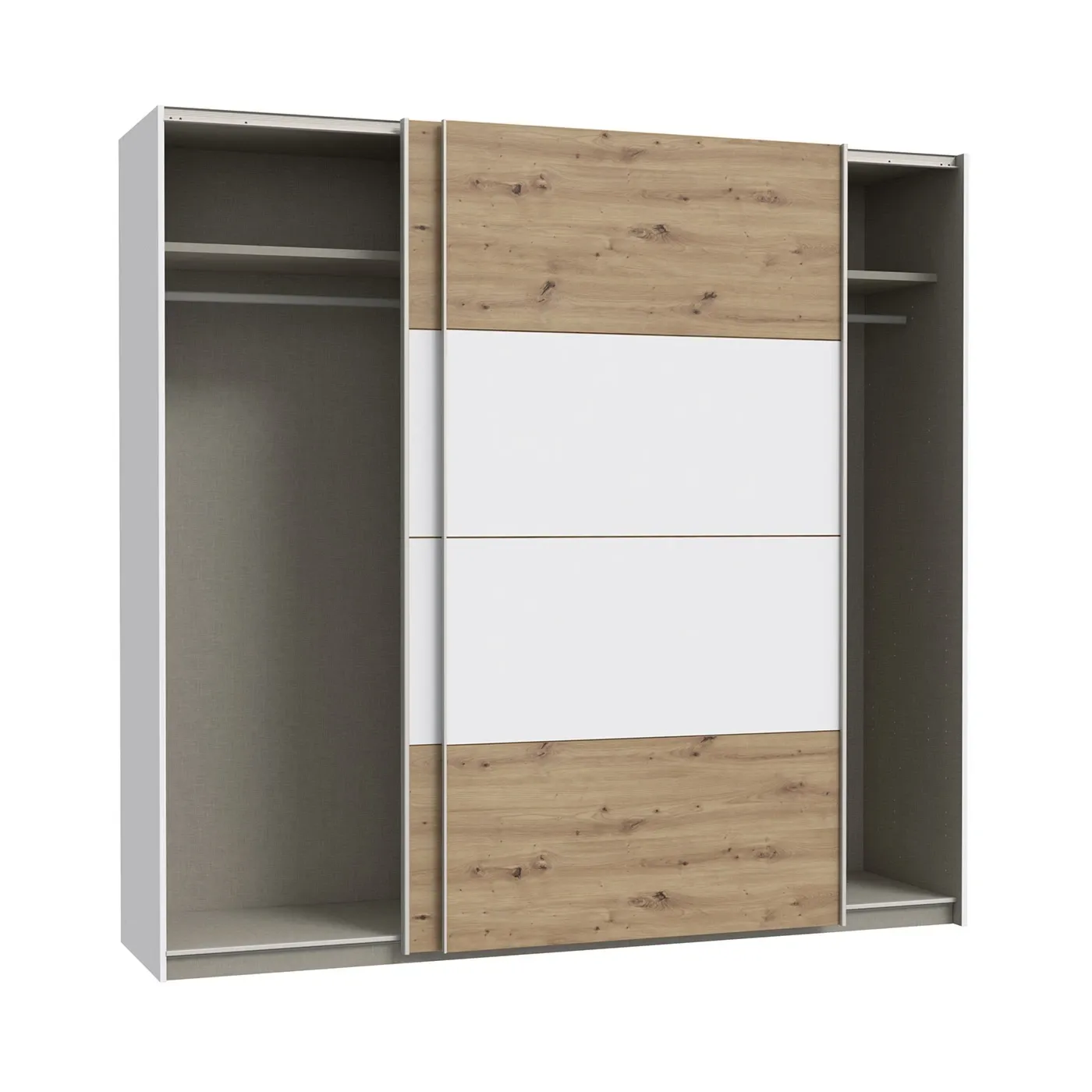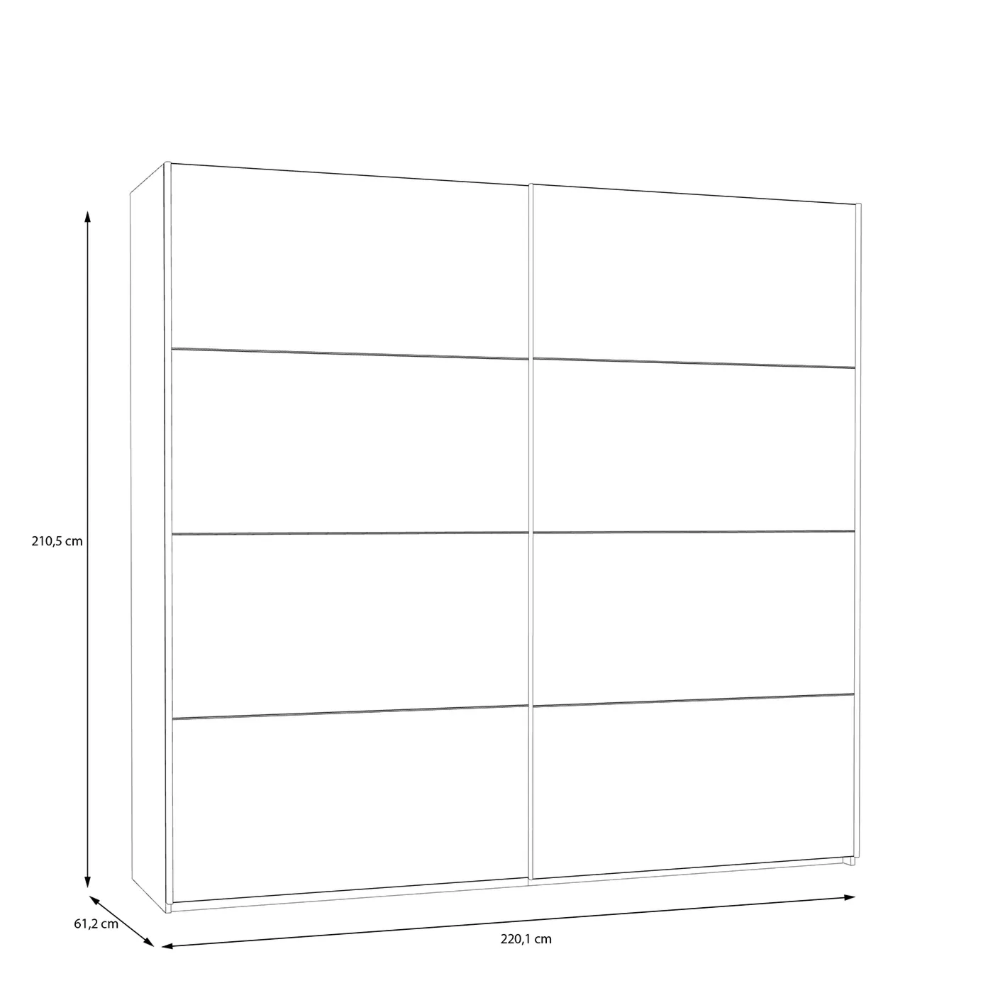 Armadio 2 ante scorrevoli, 221x62x211 h cm, Bianco e Rovere