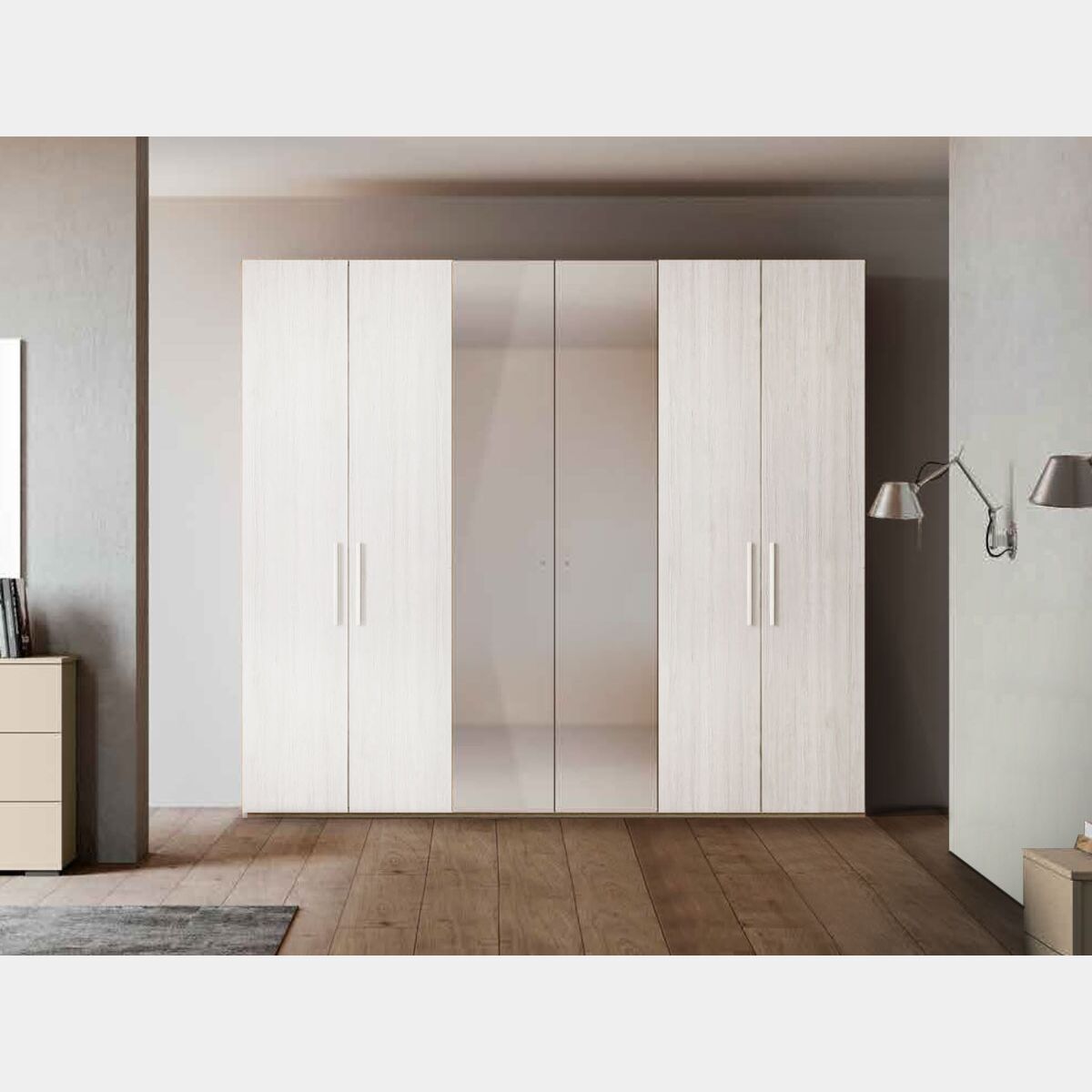 Armadio battente 6 ante con 2 ante specchio, Bianco altea