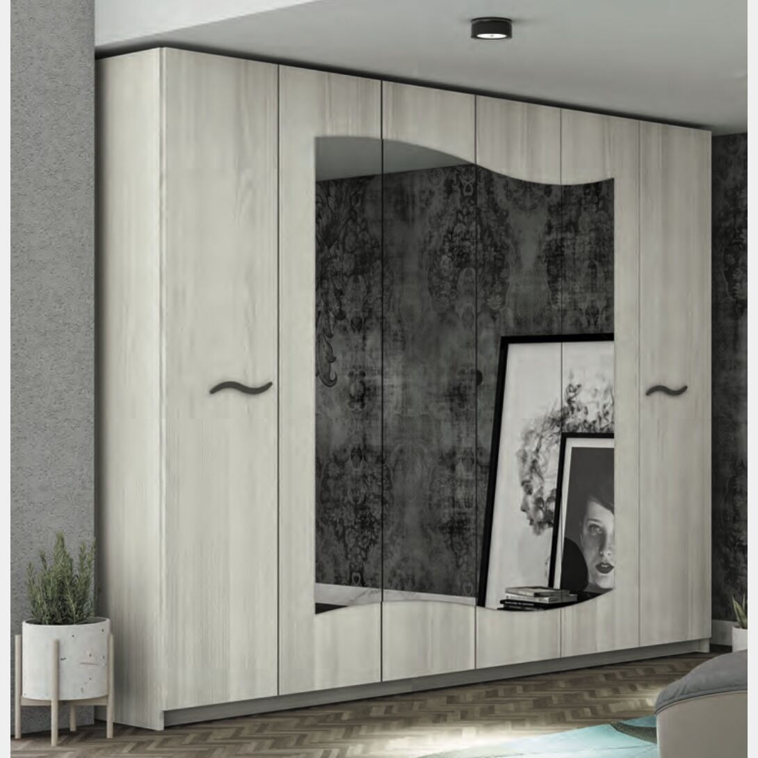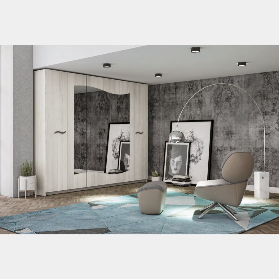 Armadio battente 6 ante con specchio sagomato, finitura Olmo Bianco
