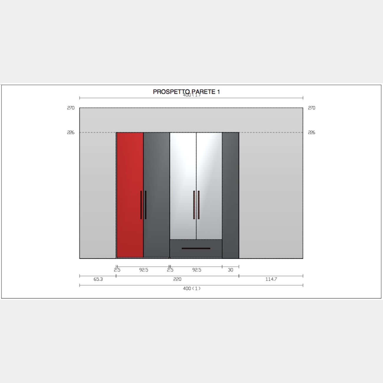 • Modulo 2 ante: L.92,5 H.226 P.60 cm