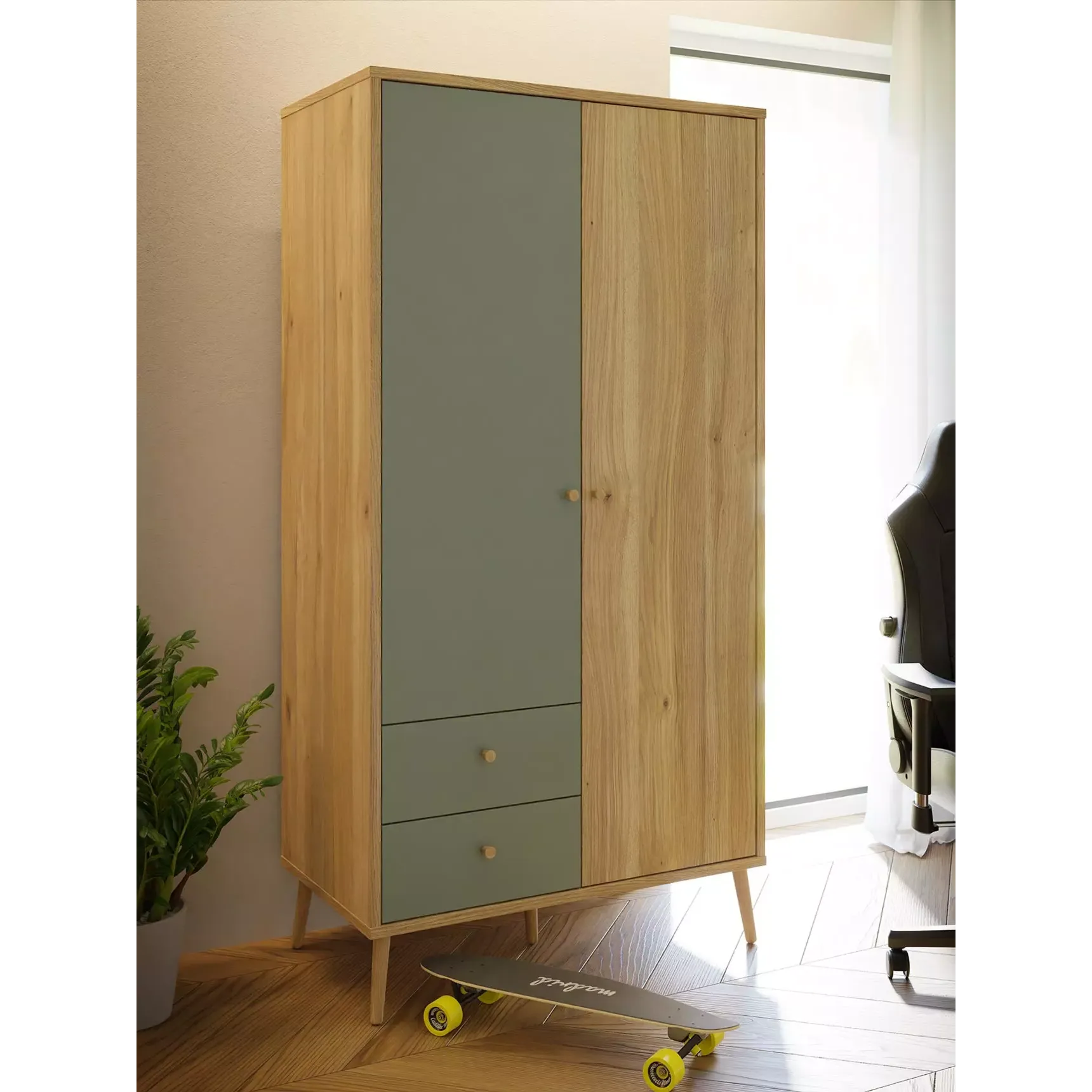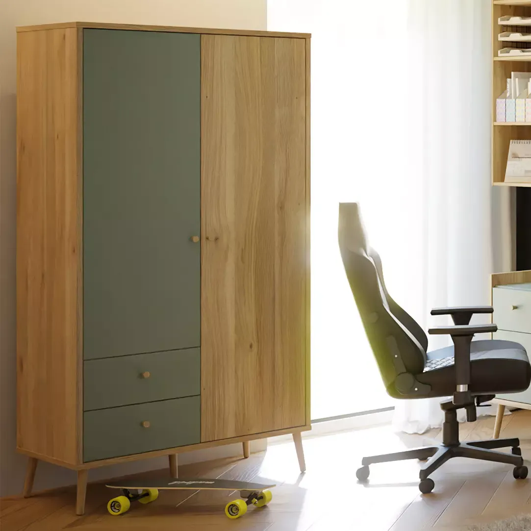Armadio battente con 2 ante 2 cassetti, finitura Agave e Rovere