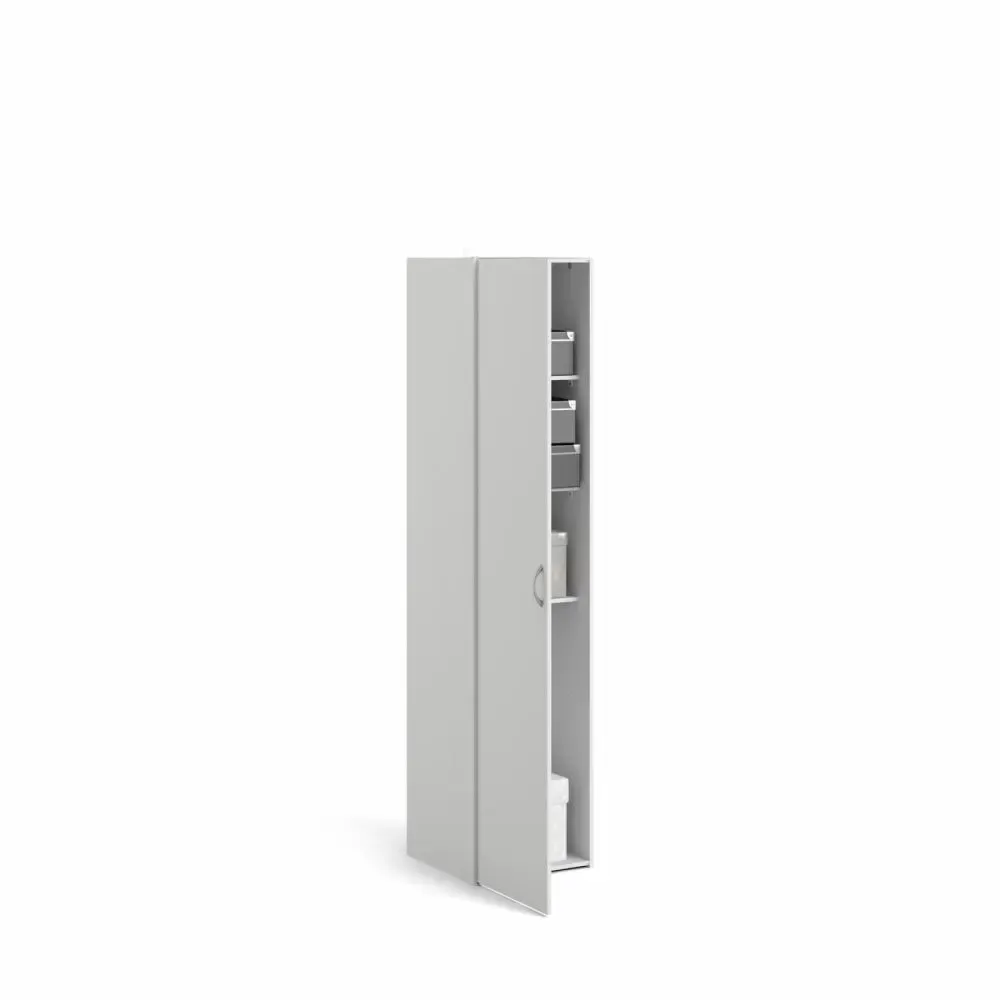 Stupendo armadio multiuso con un'anta battente in finitura Bianco. Grazie ai suoi tre ripiani avete la possibilità di riporre tutti i vostri oggetti o vestiti in ordine.