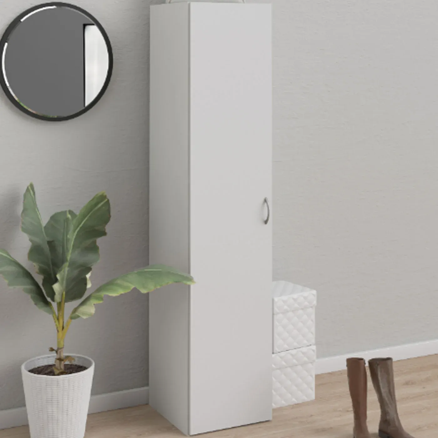 Armadio multiuso con un'anta battente in finitura Bianco