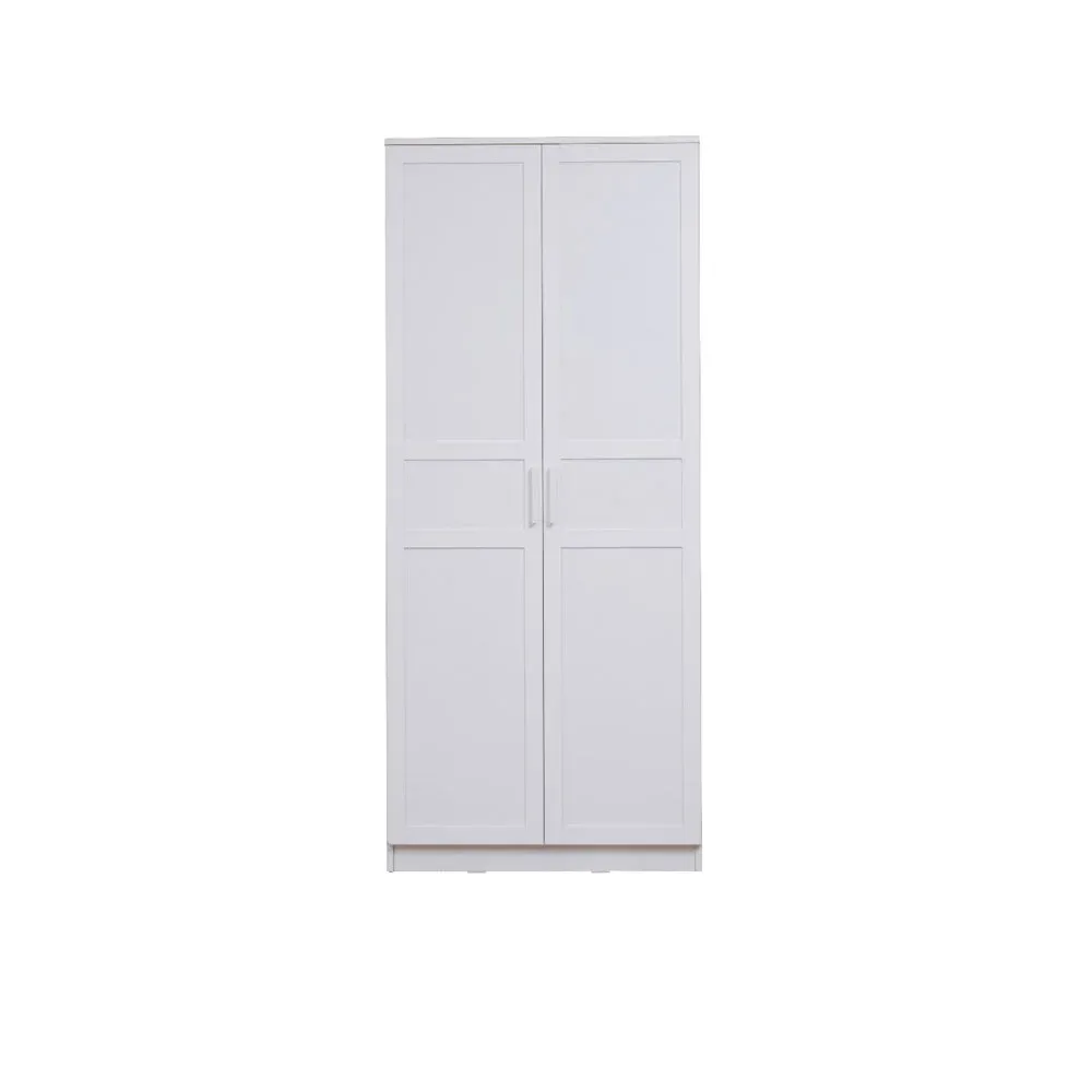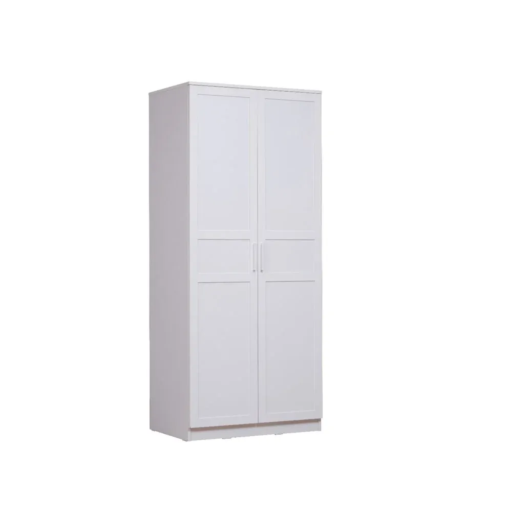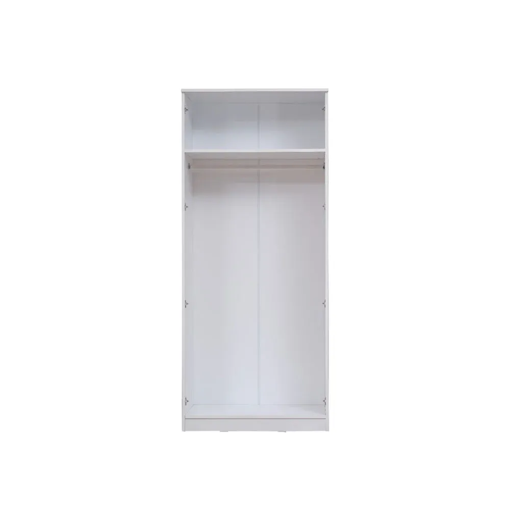 Nuovo armadio colore Bianco opaco con due ante. E' stato progettato per essere inserito in una cameretta o in una camera da letto.
