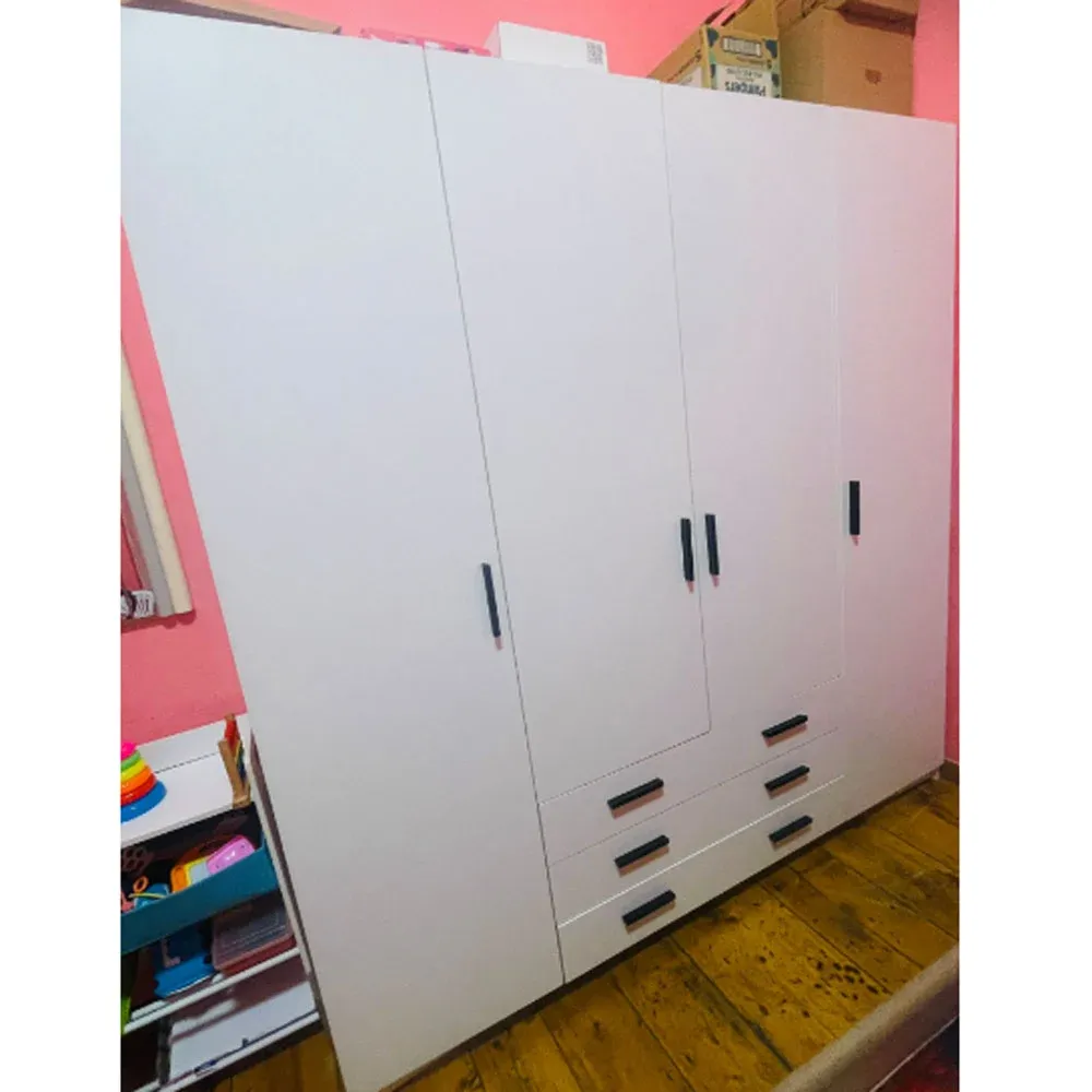Armadio fine ed elegante in finitura Bianco perfetto per ospitare il maggior numero possibile di vestiti per garantire ai nostri clienti il massimo comfort.