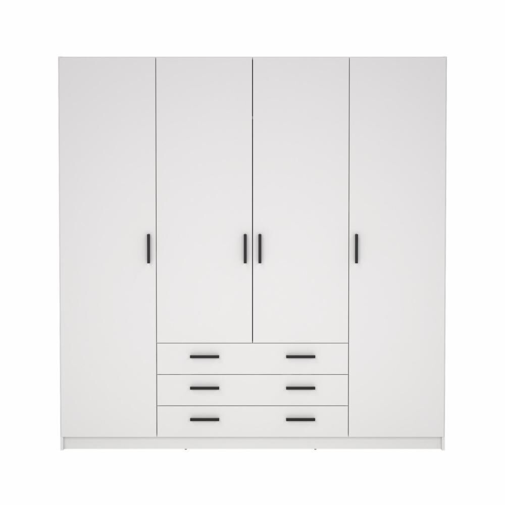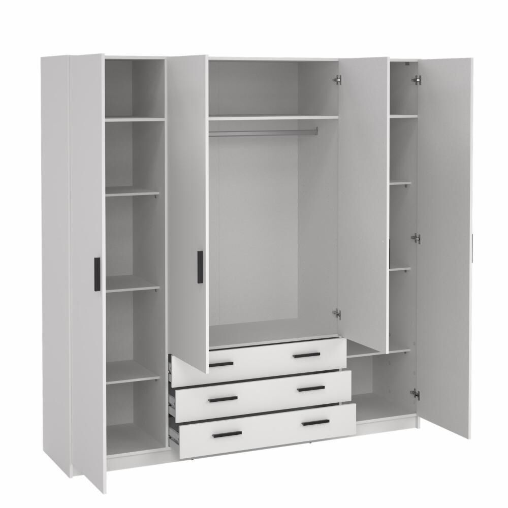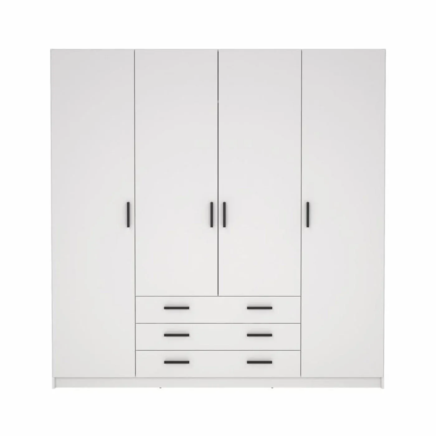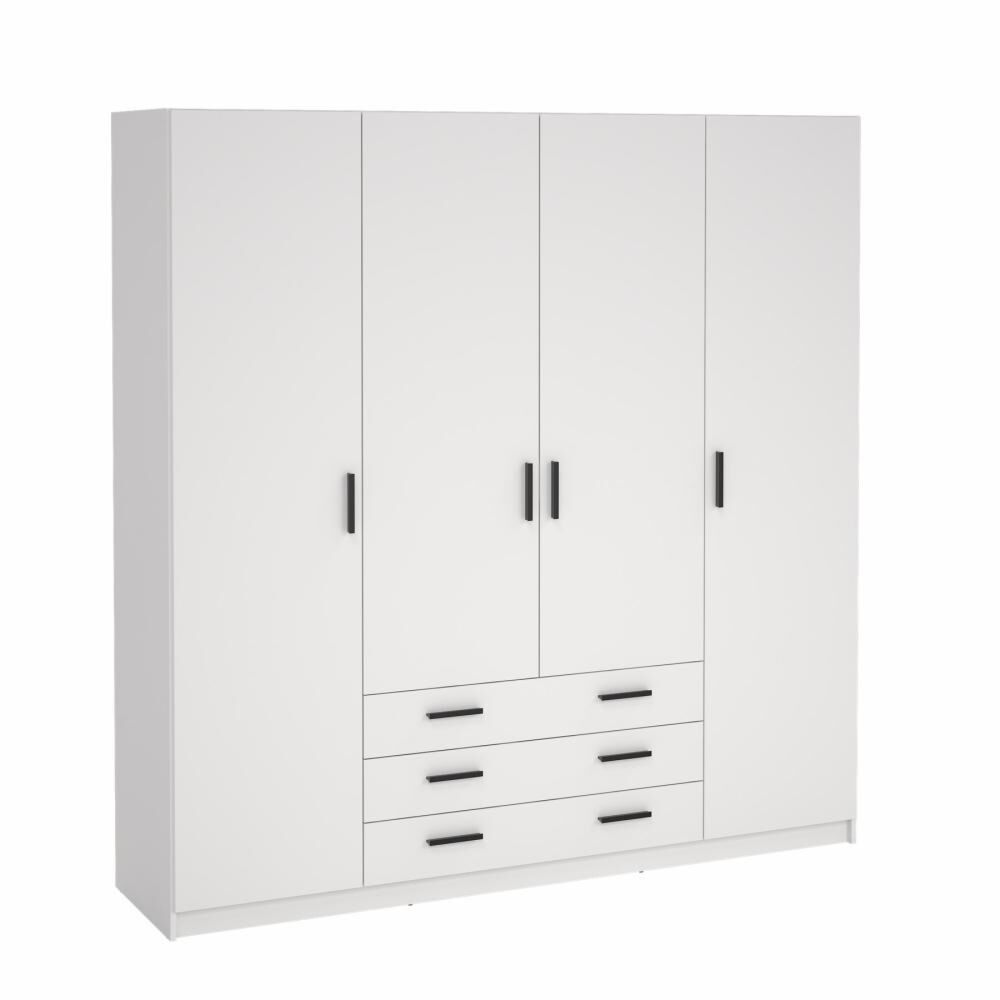 E' costituito da quattro ante battenti, da tre cassetti caratterizzati da dieci maniglie, da tubo appendiabiti, da nove ripiani che garantiscono un facile accesso. La capienza è il suo punto di forza principale e la sua grafica si rivela moderna, originale e sobbria perfetta per essere inserita o in una cameretta o camera da letto o in un garage per riporre i proprio oggetti.