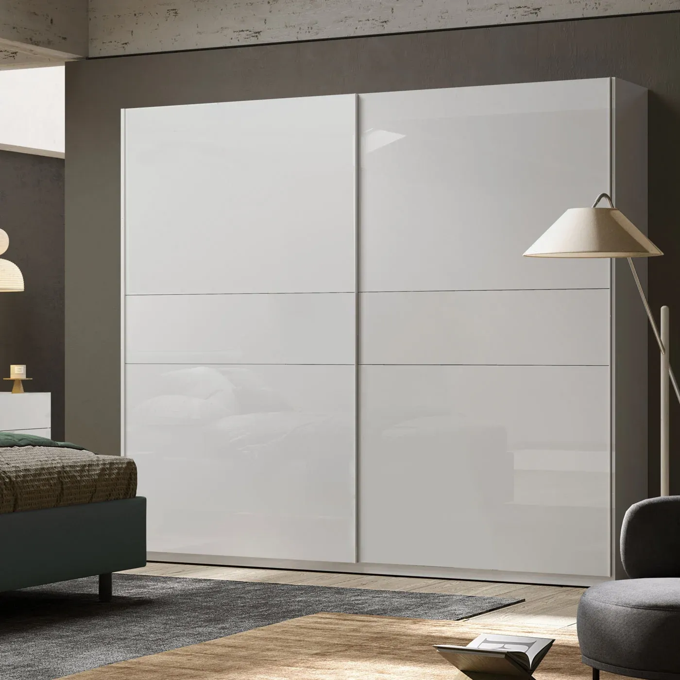 Armadio composto da due ante scorrevoli in finitura Bianco lucido che si rivela capiente per ospitare tutti i vostri vestiti in ordine. E' un bellissimo articolo d'arredamento se volete una camera luminosa e alla moda.