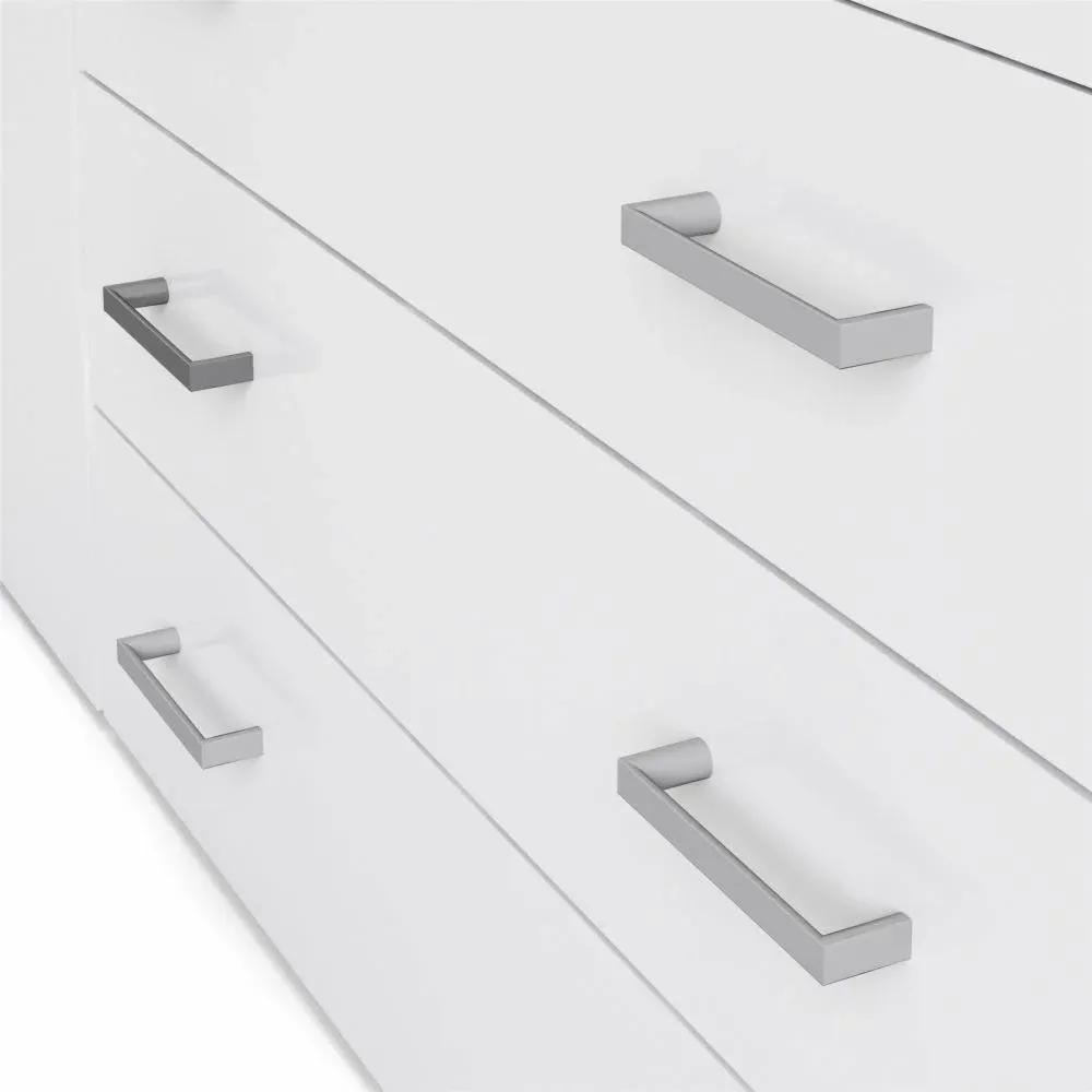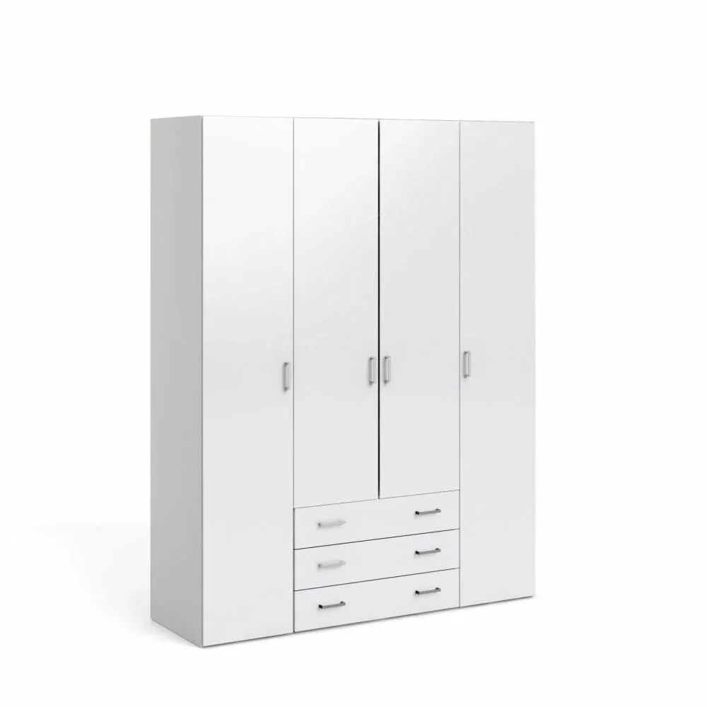 La capienza non manca anzi grazie ai suoi tre cassetti, al tubo appendiabiti, alle quattro ante battenti e ai nove ripiani avete l'opportunità di custodire i vostri vestiti in posto custodito e al sicuro.
