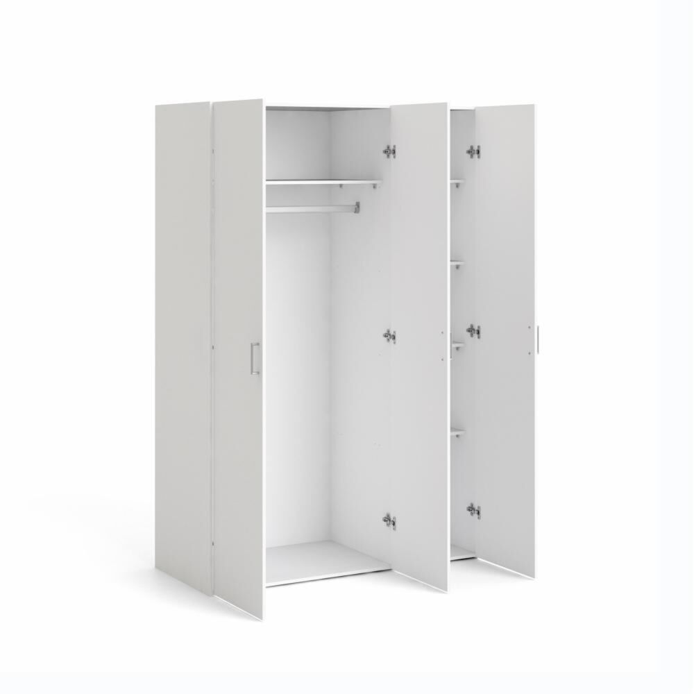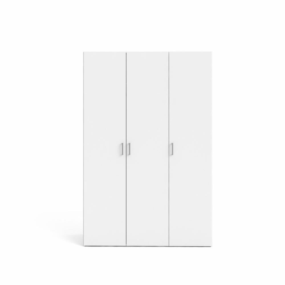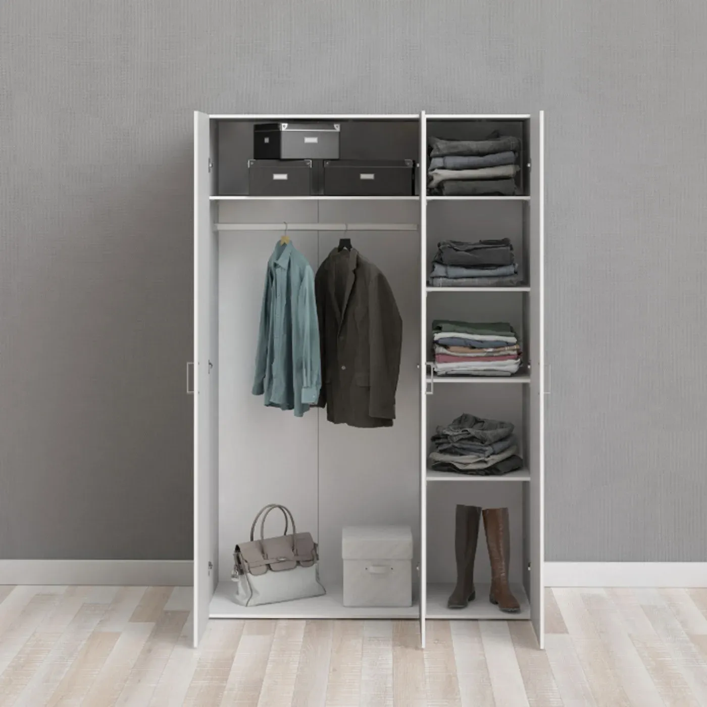 Armadio moderno salvaspazio color Bianco caratterizzato da tre ante battenti e da tre maniglie. Il mobile che vi stiamo proponendo ha la funzione di essere salvaspazio per riporre in ordine i propri vestiti garantendo la massima comodità.