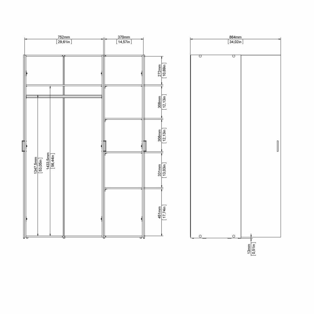 La struttura dell'armadio permette di sistemare con ordine i propri oggetti nei suoi cinque ripiani. E' composto da materiali duraturi nel tempo. Grazie al design fine, elegante e moderno è in grado di migliorare il vostro arredamento all'interno della vostra camera da letto o cameretta.