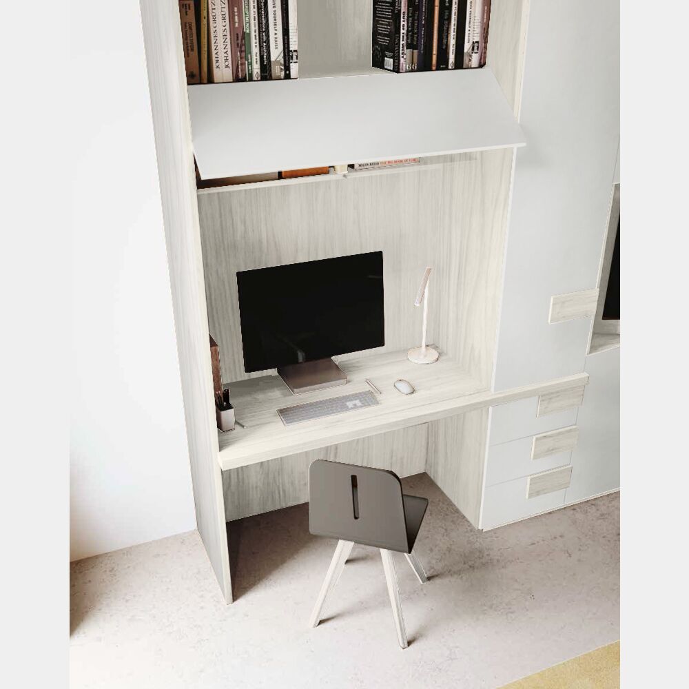 Zona studioLa zona studio è dotata di pensile basculante per mantenere l'ambiente organizzato e lavorare in comodità. Come optional è possibile richiedere la sedia.