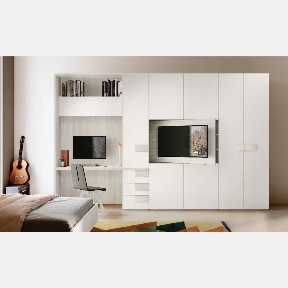 Armadio zona tv e scrivania, 7 ante in Bianco Altea e Bianco Opaco