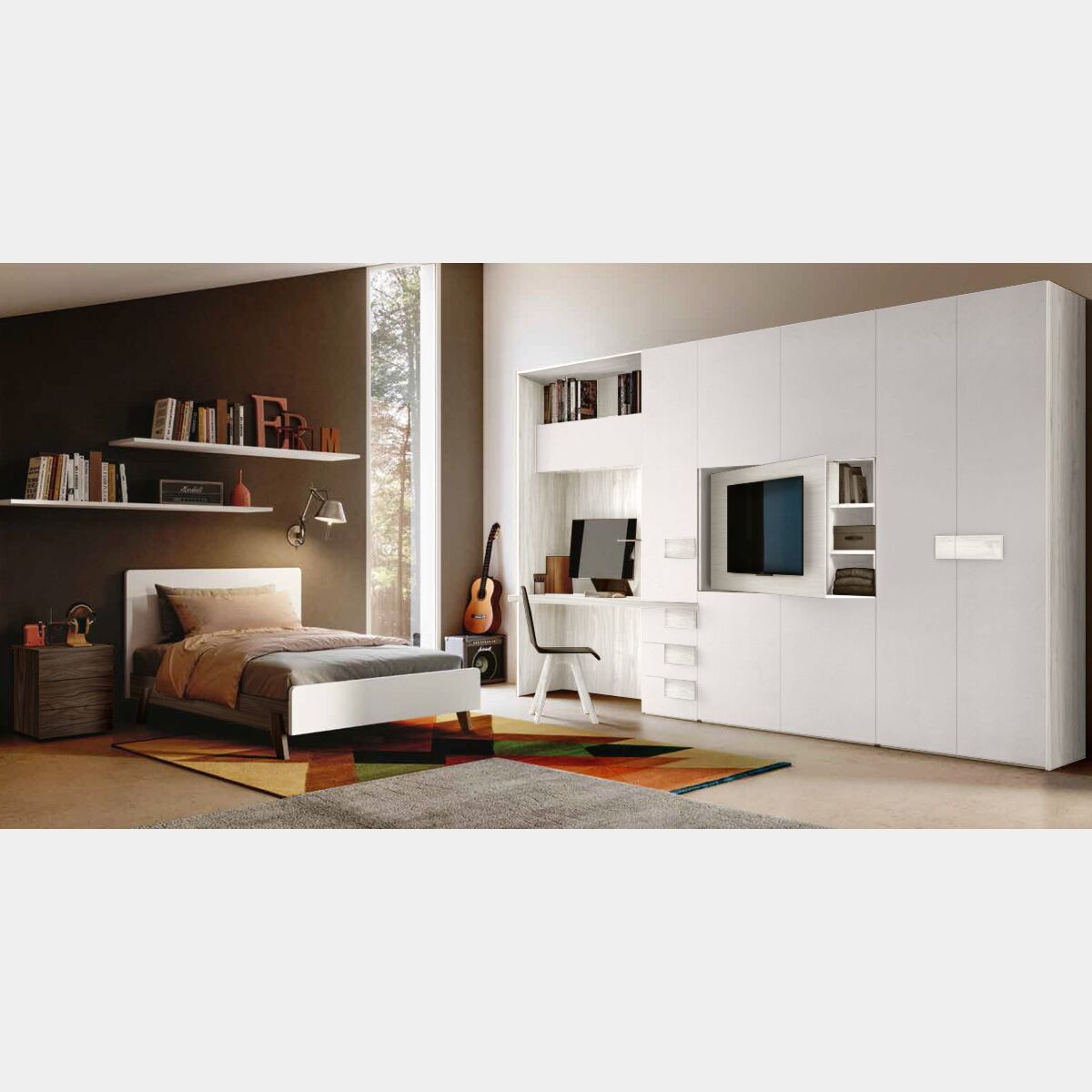L'armadio è dotato di un vano tv orientabile per assicurare una corretta visione della televisione in tutte le direzioni, posteriormente vi è una piccola libreria composta da 2 ripiani. Il modulo collegato alla zona studio prevede un'anta e 3 cassetti.