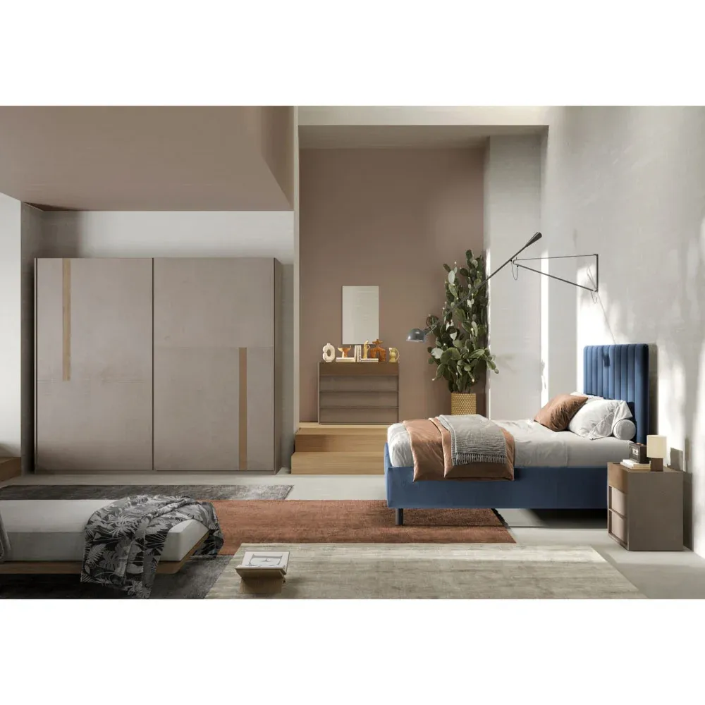 Armadio colore Mercure e Bronzo a due ante scorrevoli. E' disponibile lo stesso modello in dimensioni più piccole.