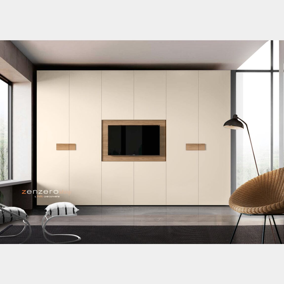 Armadio camera letto con vano tv, Noce Biondo e Orzo