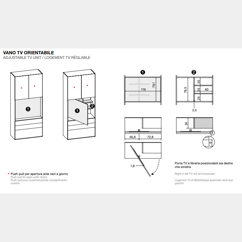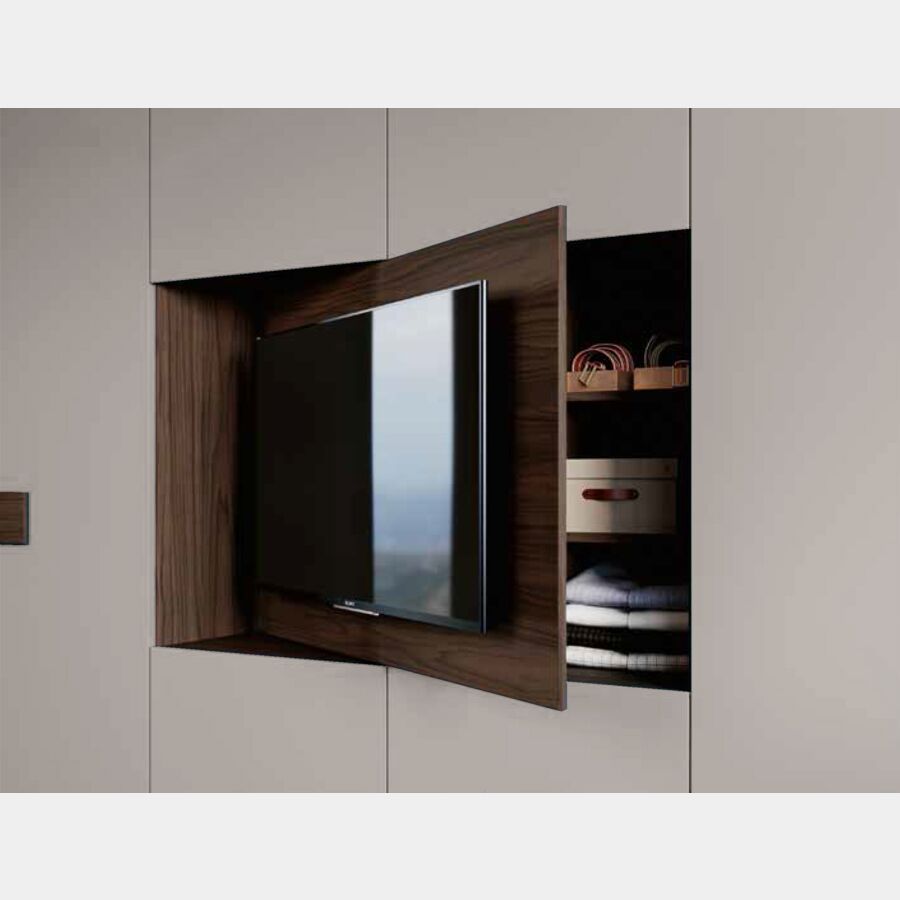 Il vano TV orientabile (come in foto) è un optional aggiuntivo, se non si sceglie il vano orientabile l'armadio arriverà con un classico vano TV fisso.