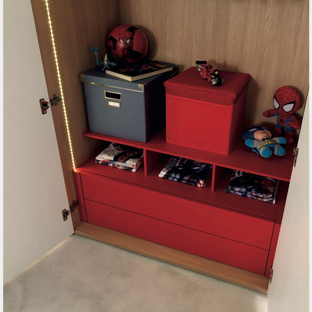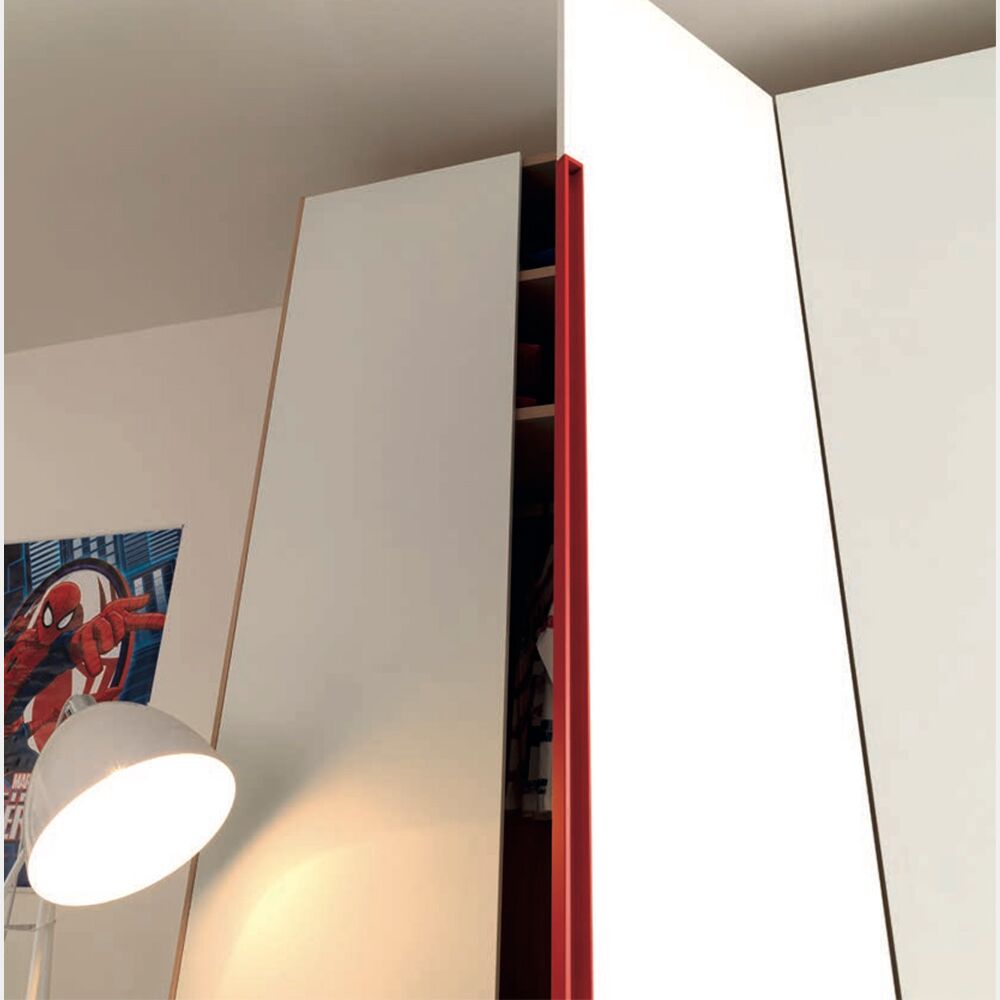 Creatività e tecnologia danno vita a una composizione che piace tanto ai ragazzi e fornisce loro un nuovo modo di vivere la quotidianità. E' la forza del design italiano che qui si esprime con il linguaggio essenziale nella maniglia a incasso per consenitre di aprire in modo semplice le ante dell'armadio. Meraviglia per la vista ed il tatto.