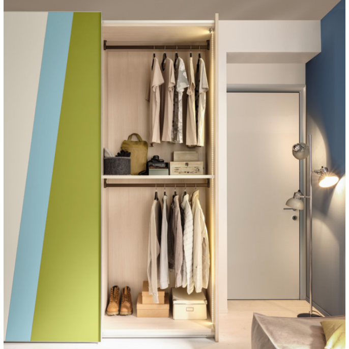 Energia e dinamismo sono i tratti distintivi di questo armadio scorrevole. L'armadio è prodotto secondo le regole della migliore artigianalità, bello da vedere e pratico da usare.