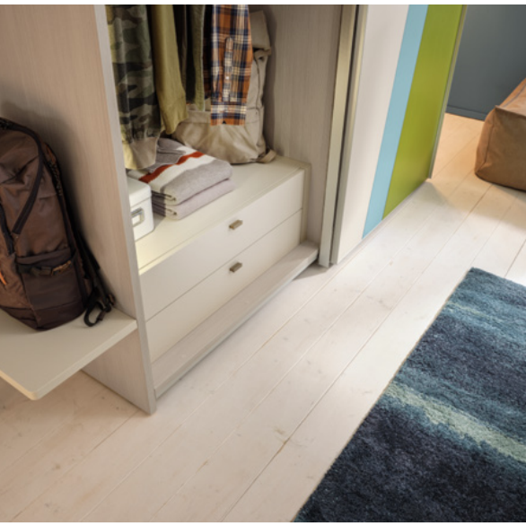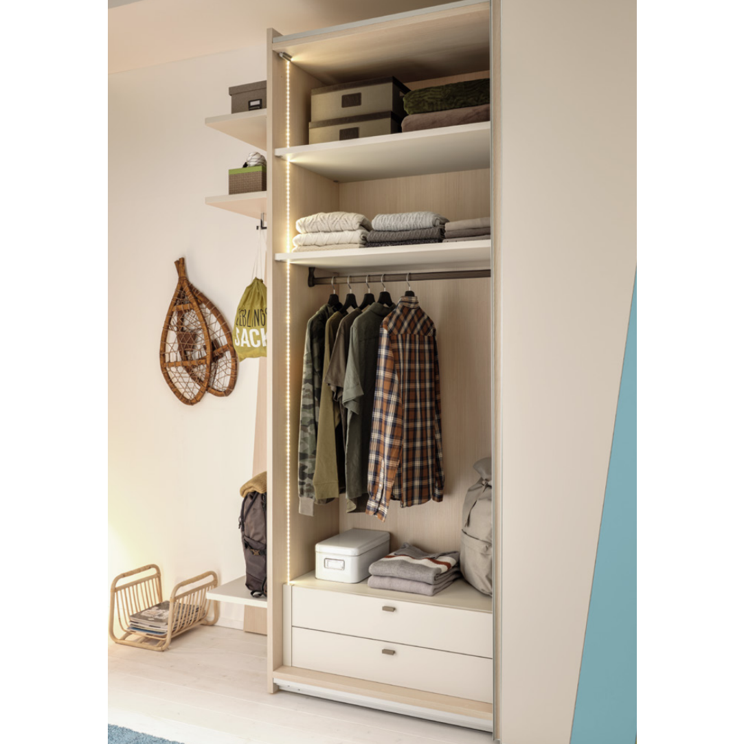 La struttura può essere personalizzata con colori neutri, i frontali invece possono essere richiesti in colorati lisci oppure venati (con poro aperto). Crea il tuo accostamento e personalizza l'armadio come preferisci!