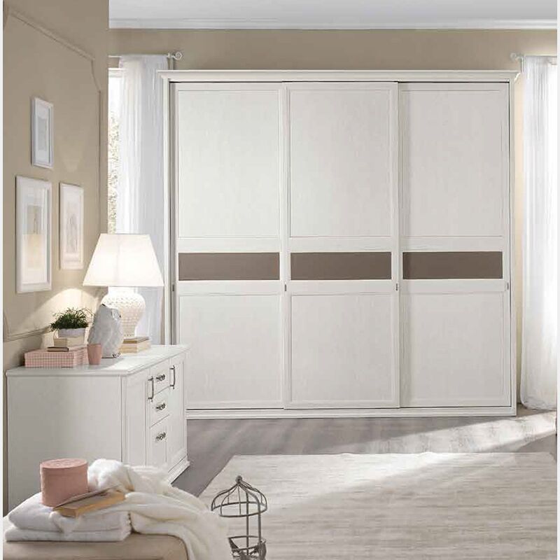 Armadio Classic con 3 ante scorrevoli con inserti a specchio in finitura Bucaneve