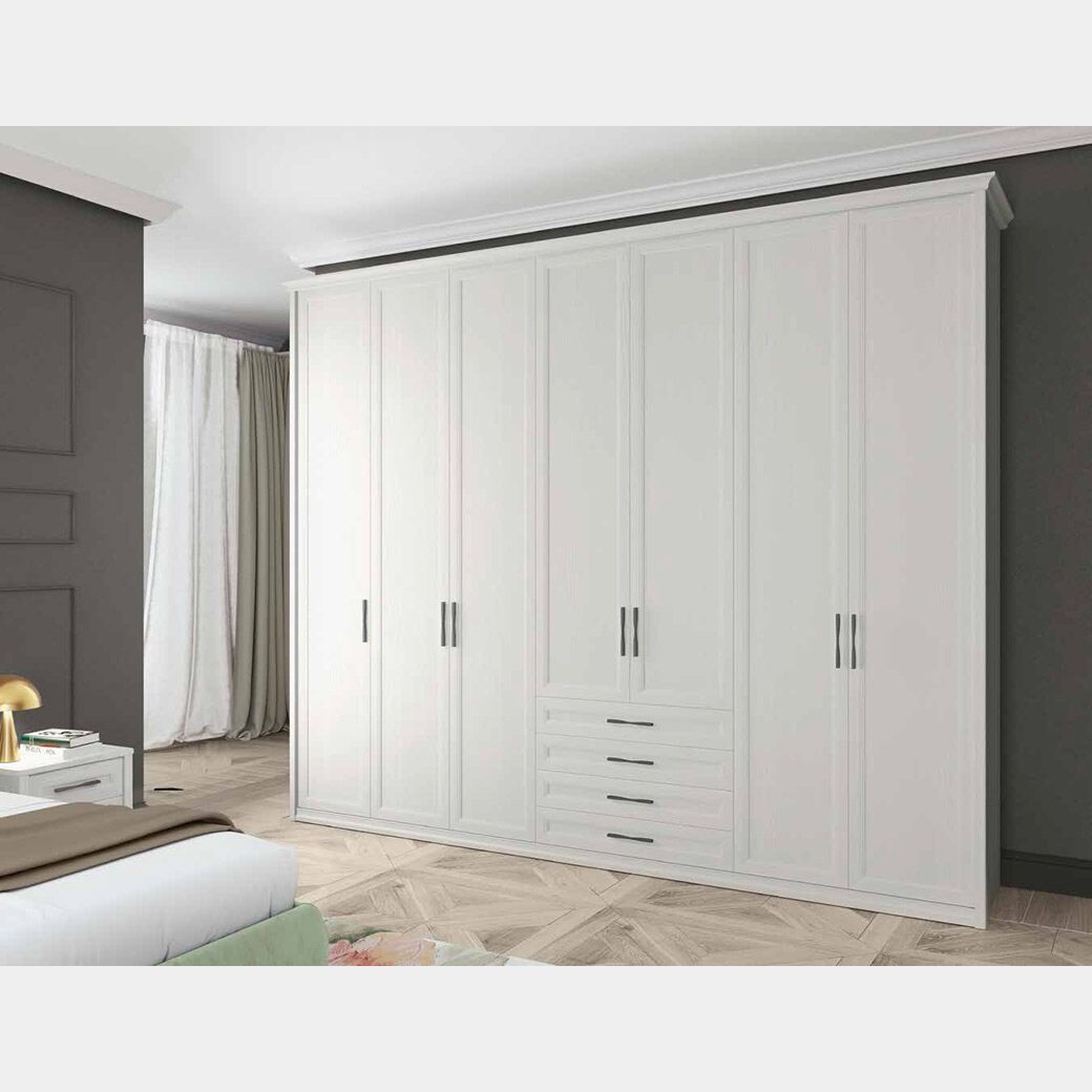 Armadio Classic con 7 ante battenti e 4 cassetti in finitura Bucaneve