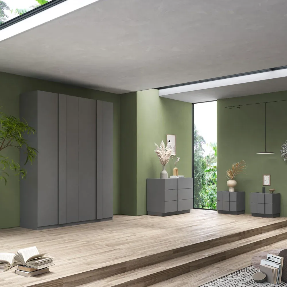 Armadio a 4 ante battenti in finitura Ardesia. E' disponibile lo stesso modello anche a 2 e 6 ante.