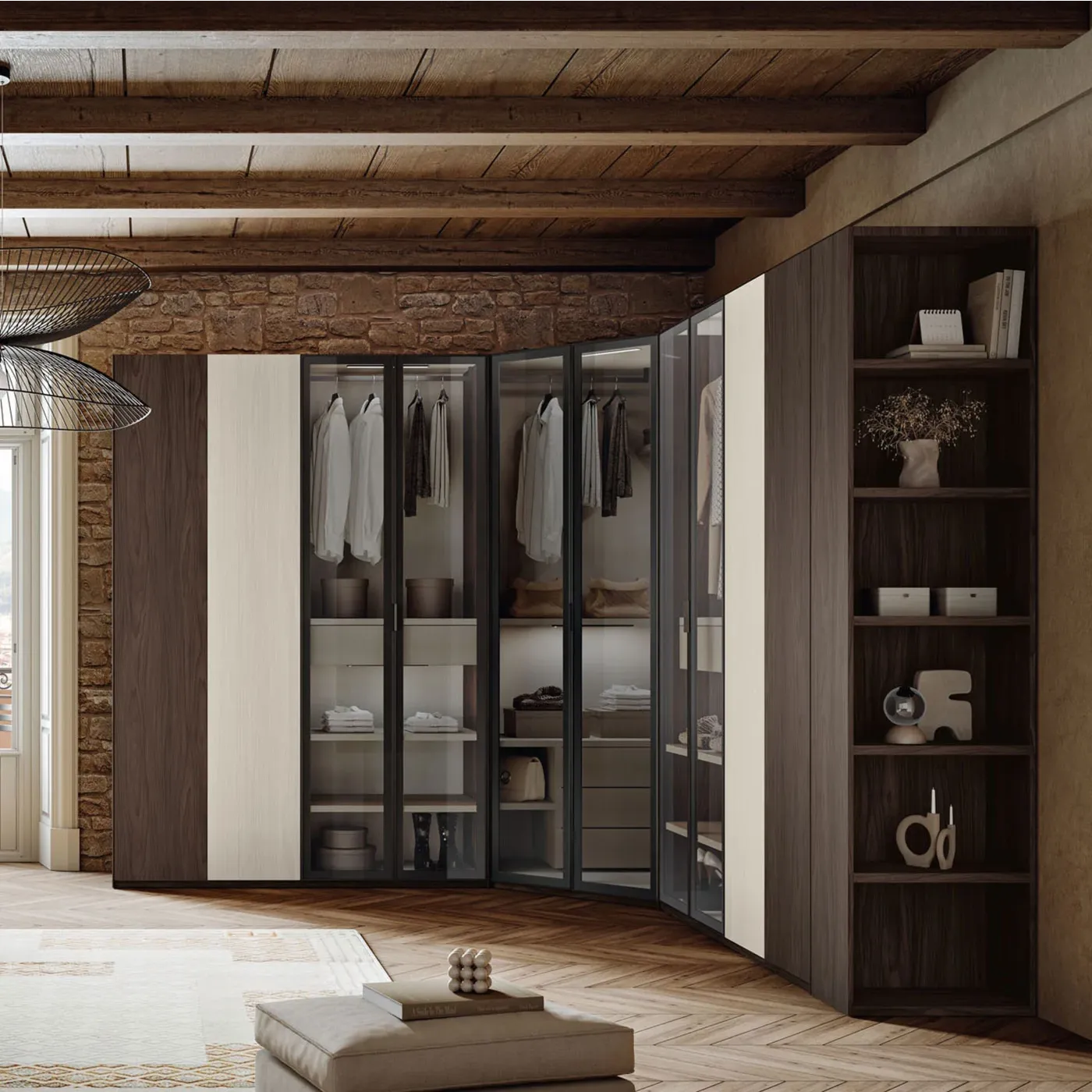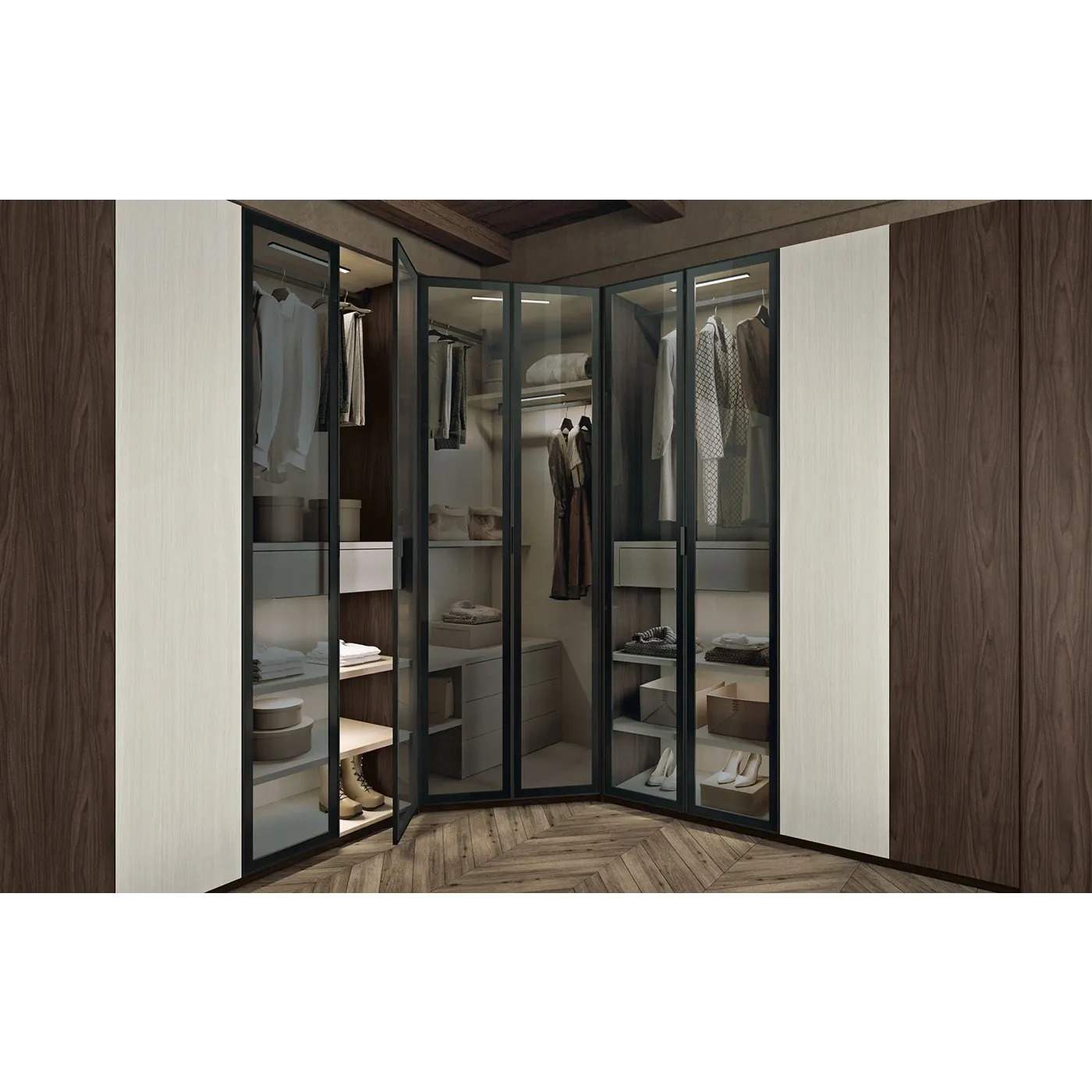 Armadio con cabina con ante a vetro della prestigiosa collezione Apache.