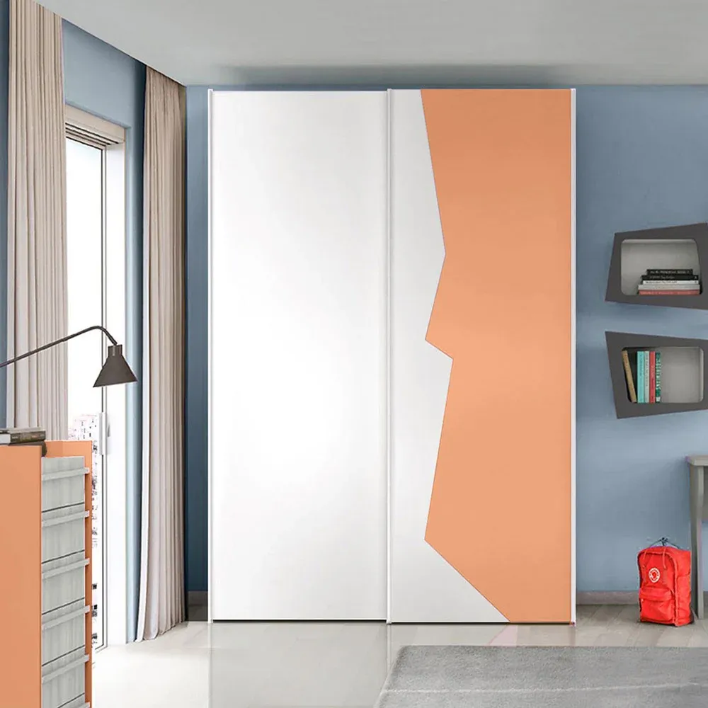 Armadio con 2 ante scorrevoli bicolore in finitura Papaya e Bianco Opaco