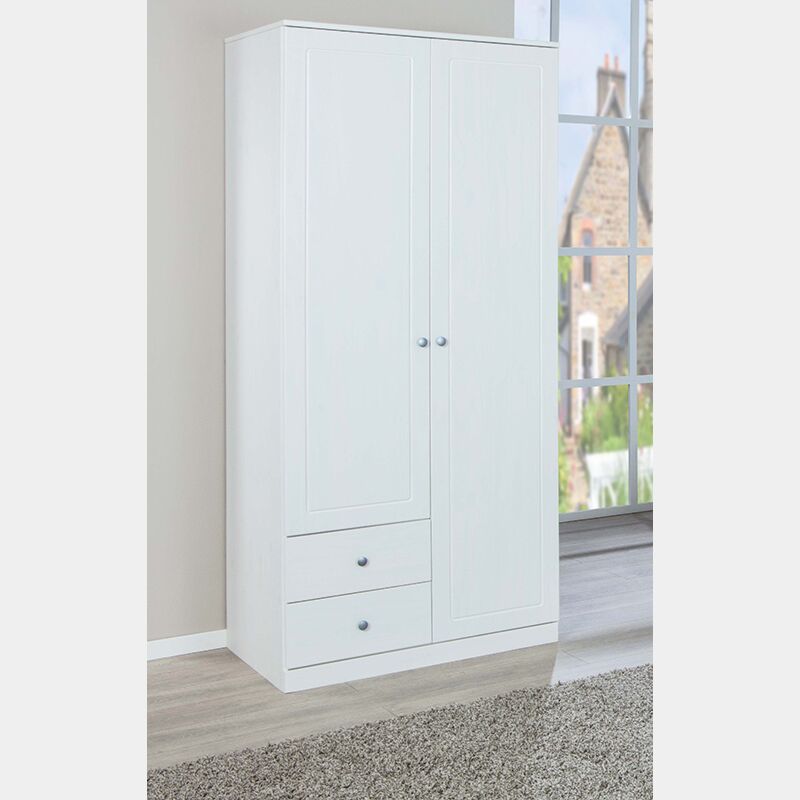 Armadio con 2 ante battenti e 2 cassetti in finitura bianco