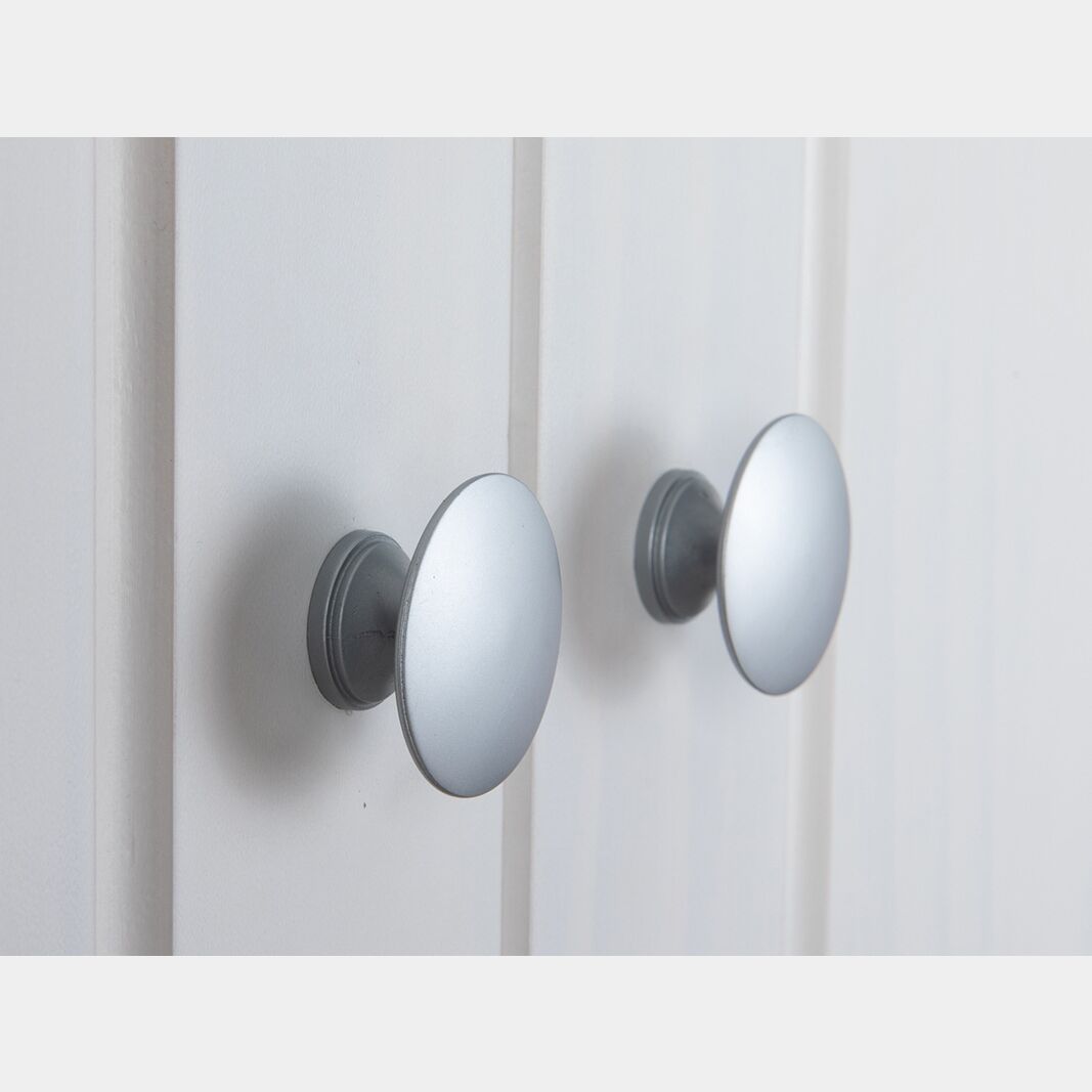 Questo armadio è in legno massello verniciato bianco, idrorepellente e di facile manutenzione. E' dotato di un ripiano con un tubo appendiabiti presenti nel vano a 2 ante. Le comode maniglie tonde garantiscono un'ottima presa per l'apertura.
