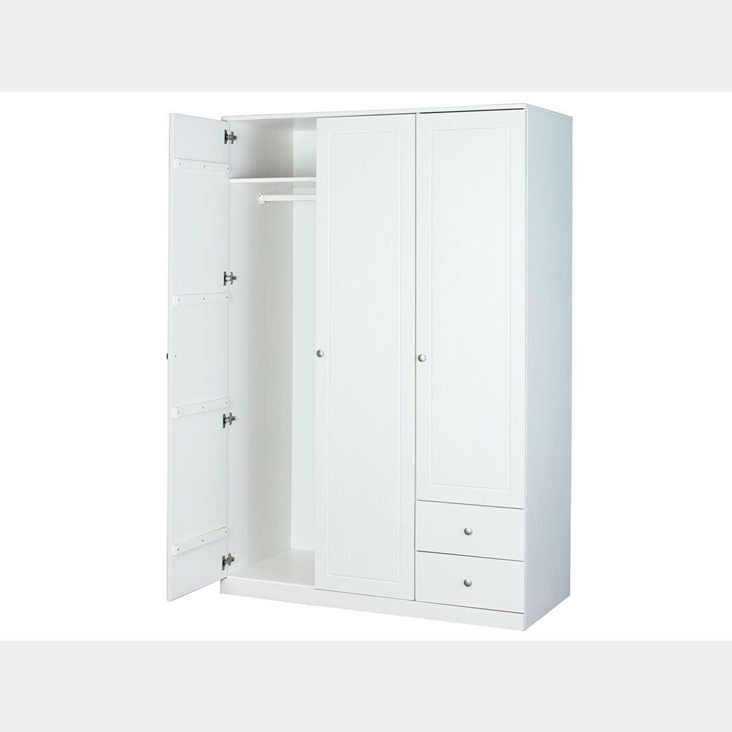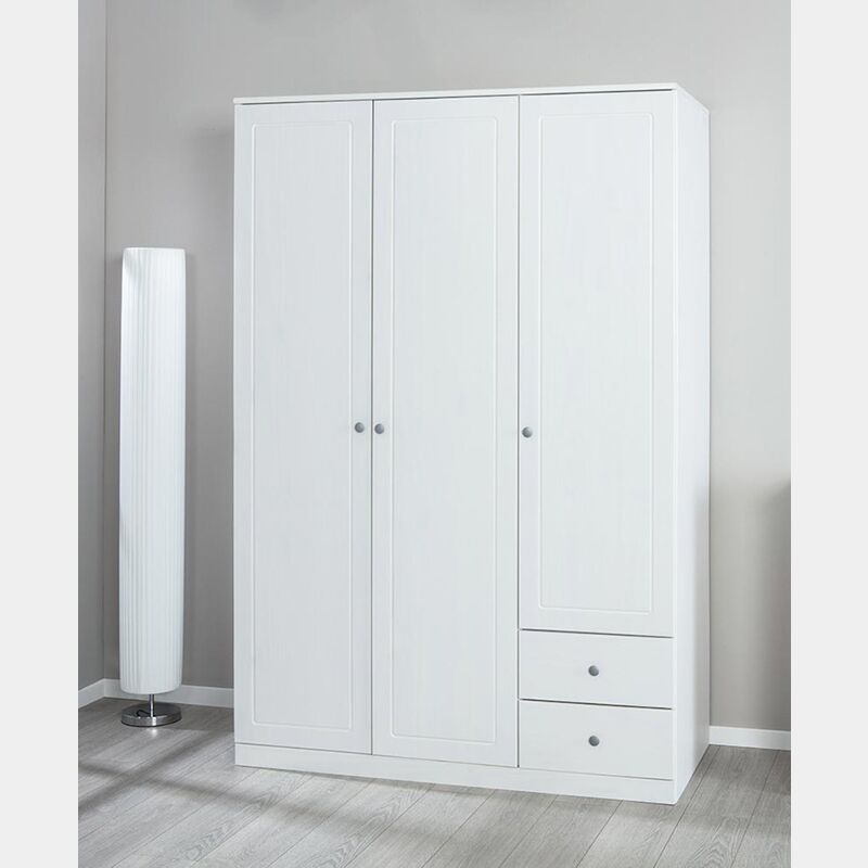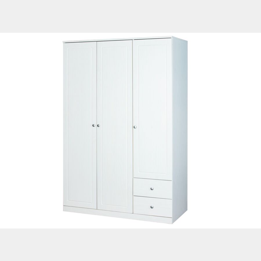 Armadio con 3 ante battenti e 2 cassetti in finitura bianco