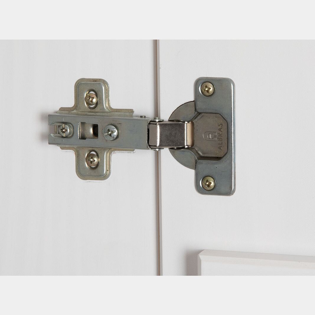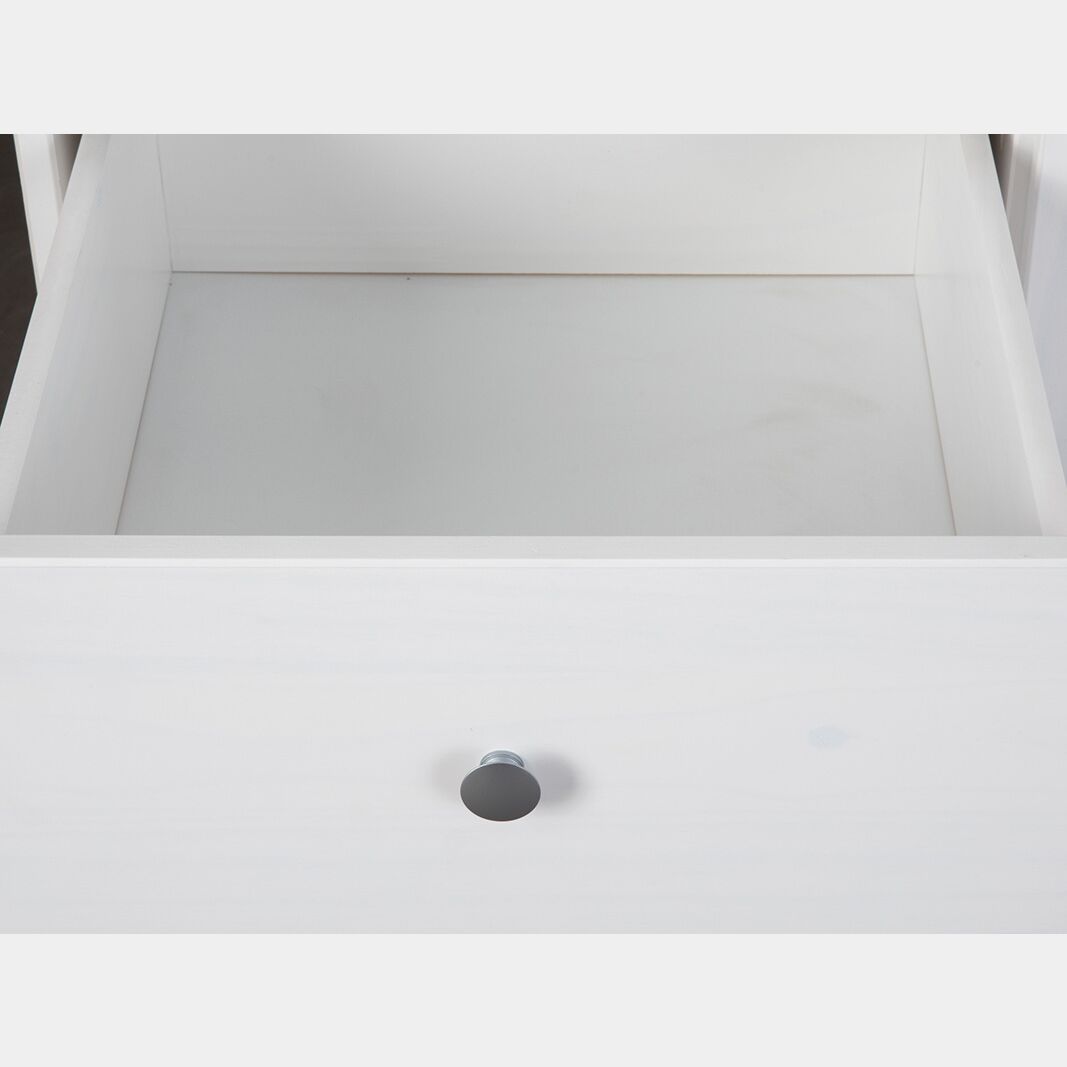 Questo armadio è in legno massello verniciato bianco, idrorepellente e di facile manutenzione. E' dotato di un ripiano con un tubo appendiabiti presenti nel vano a 2 ante mentre nell'anta singola sono presenti 2 ripiani. Sono presenti inoltre 2 cassetti.