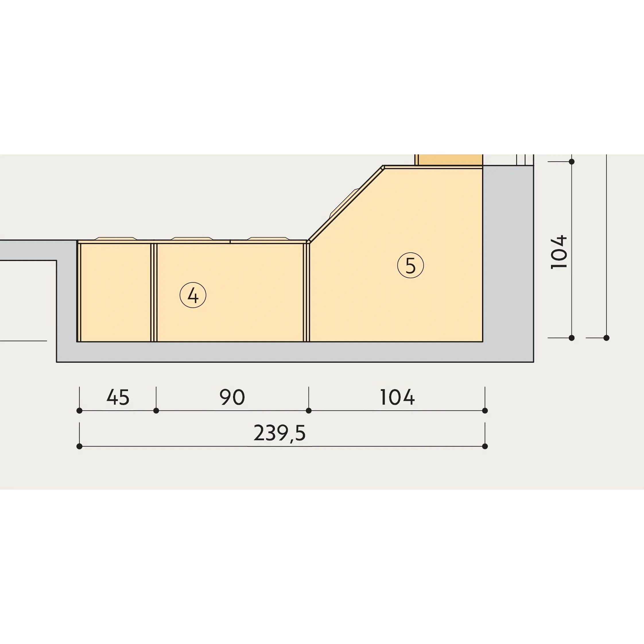 L'allestimento standard prevede un ripiano angolare con due tubi appendiabiti ed un tubo per gli altri due moduli.