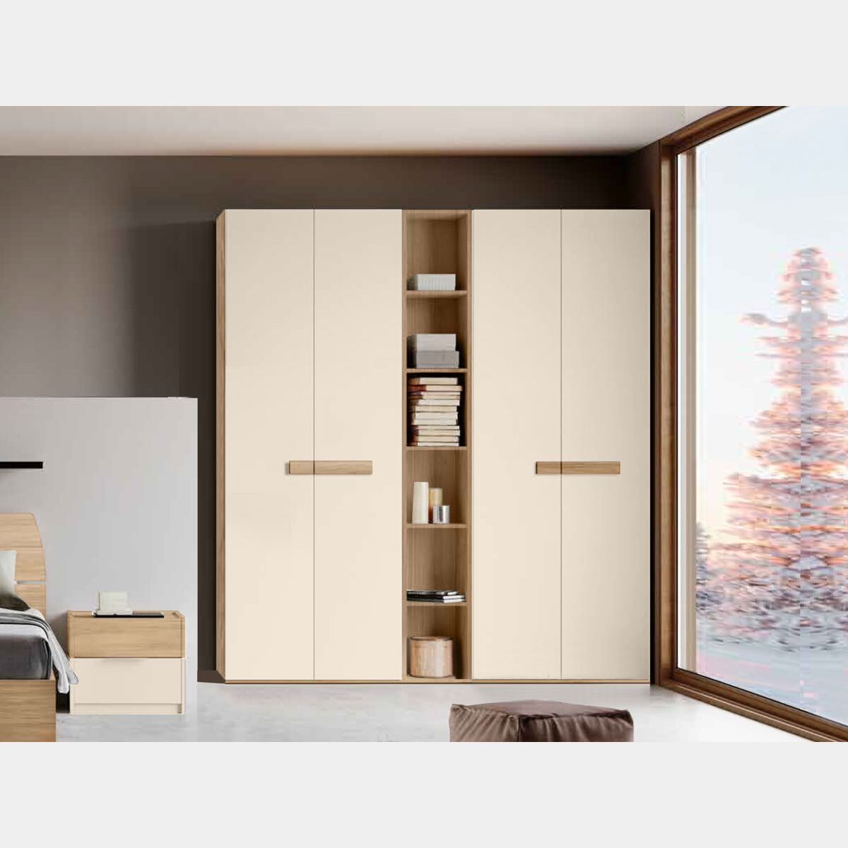 Armadio con libreria a 4 ante battenti, finitura Orzo e Noce biondo