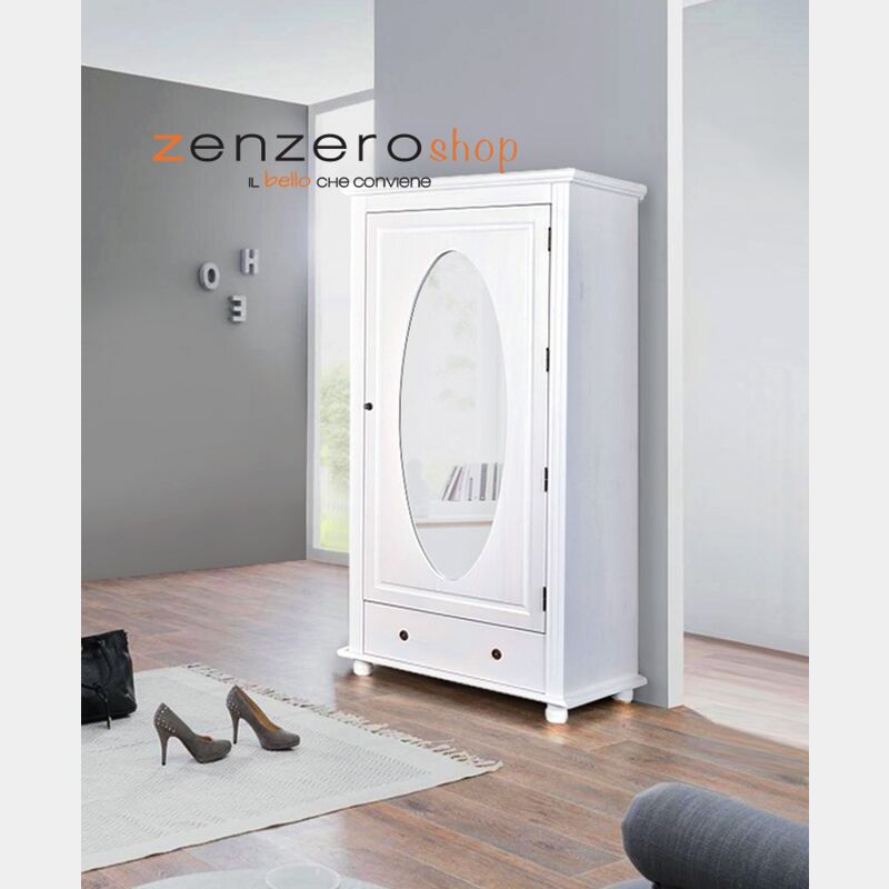 Armadio con piedini e un'anta con specchio in finitura bianco