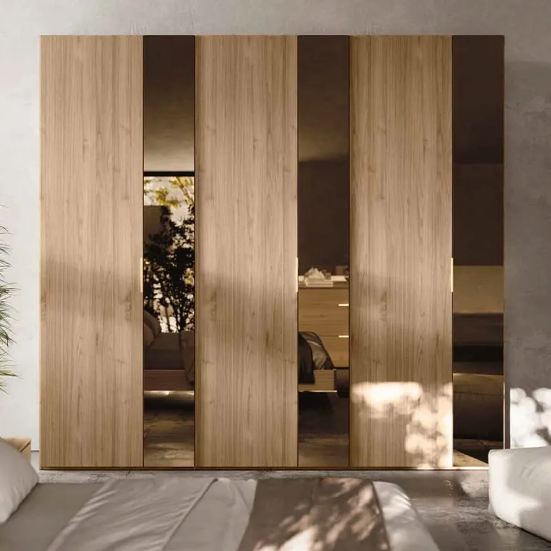 Armadio con specchi Bronzo, 6 ante, finitura Noce biondo