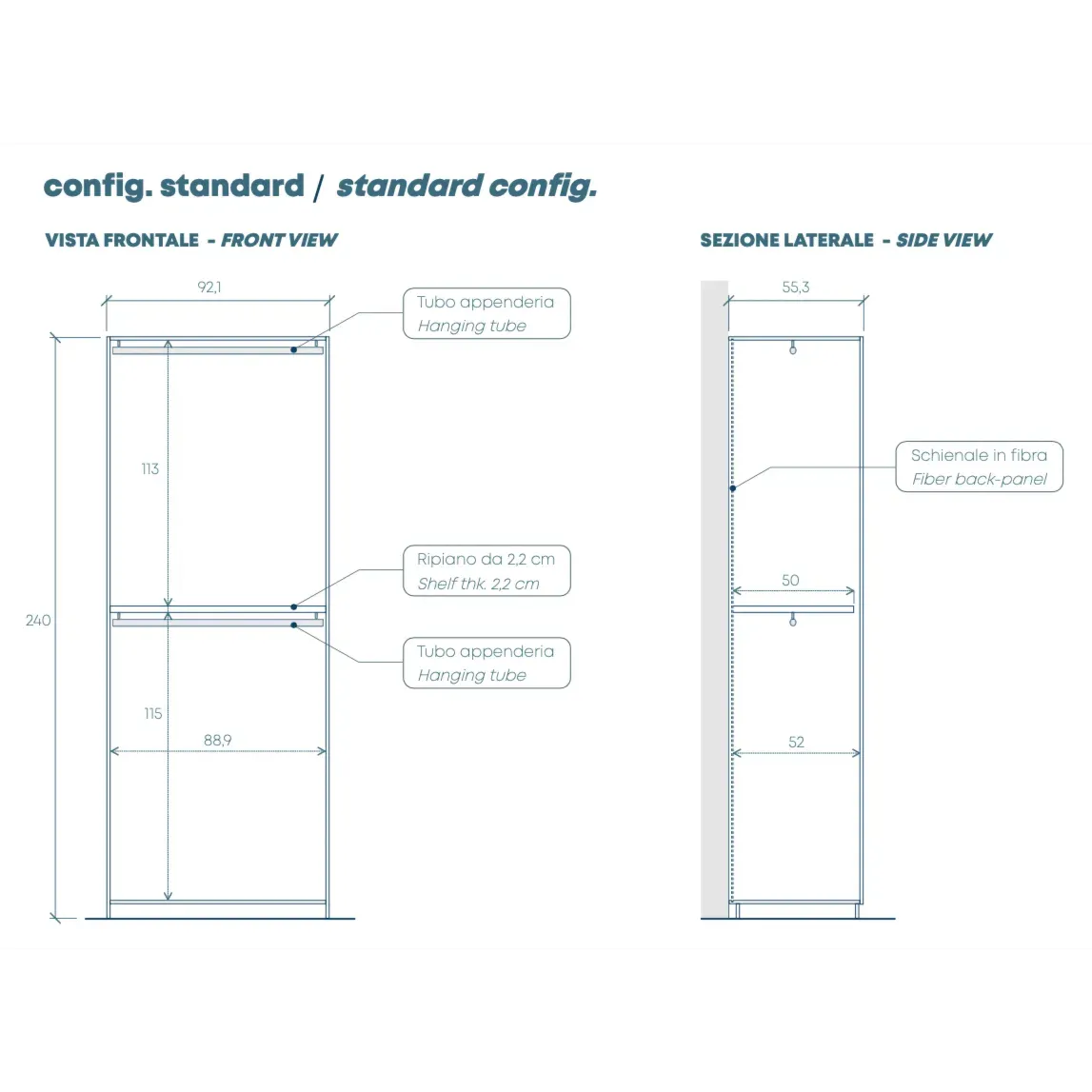 • Allestimento standard 1 ripiano, 2 tubi per moduli laterali