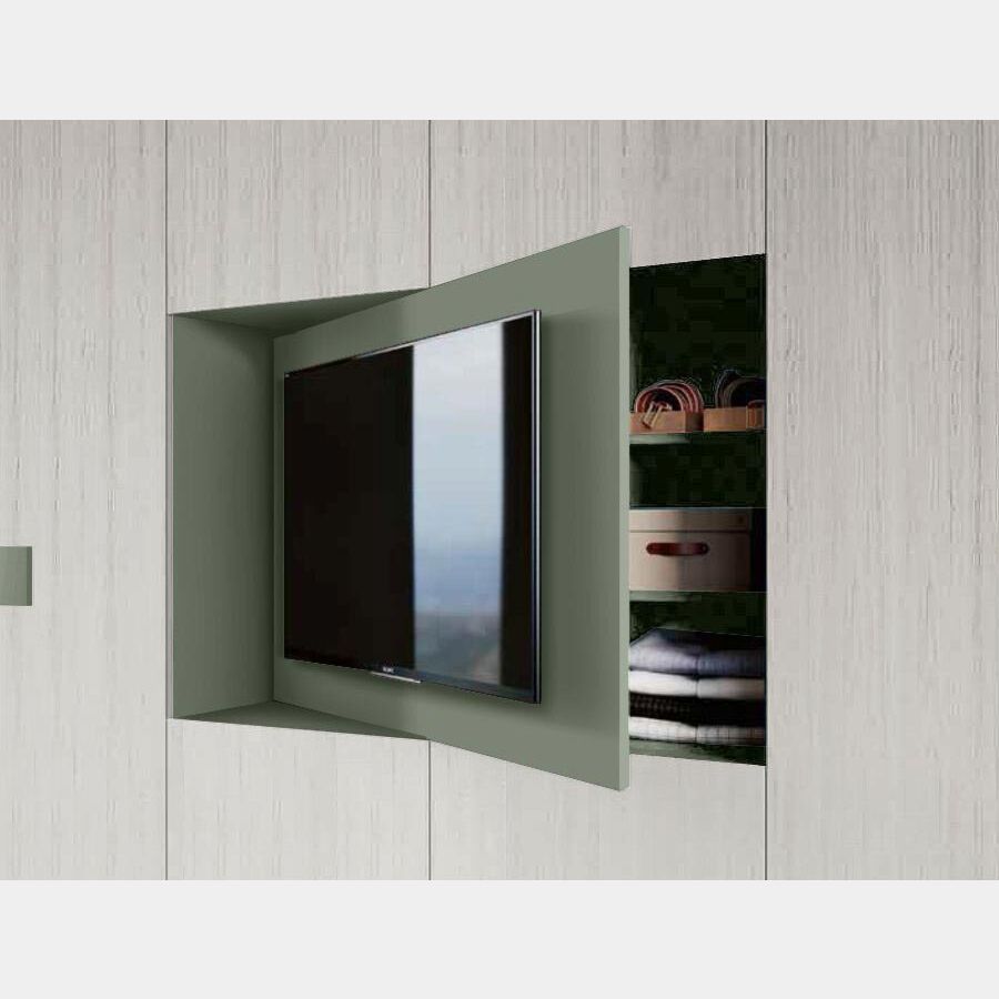 Il vano TV orientabile (come in foto) è un optional aggiuntivo, se non si sceglie il vano orientabile l'armadio arriverà con un classico vano TV fisso.