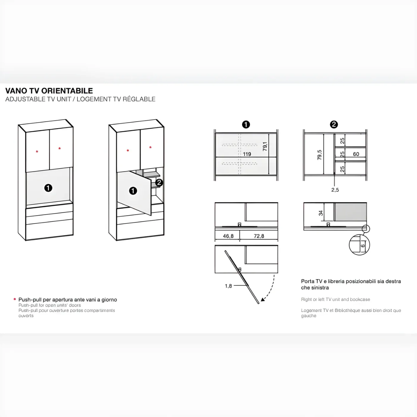 La possibilità di personalizzare le finiture, la disponibilità di due altezze e l'opzione di scelta tra vano tv fisso o girevole ti consentiranno di personalizzare al meglio l'armadio, adattandolo perfettamente alla tua camera da letto.